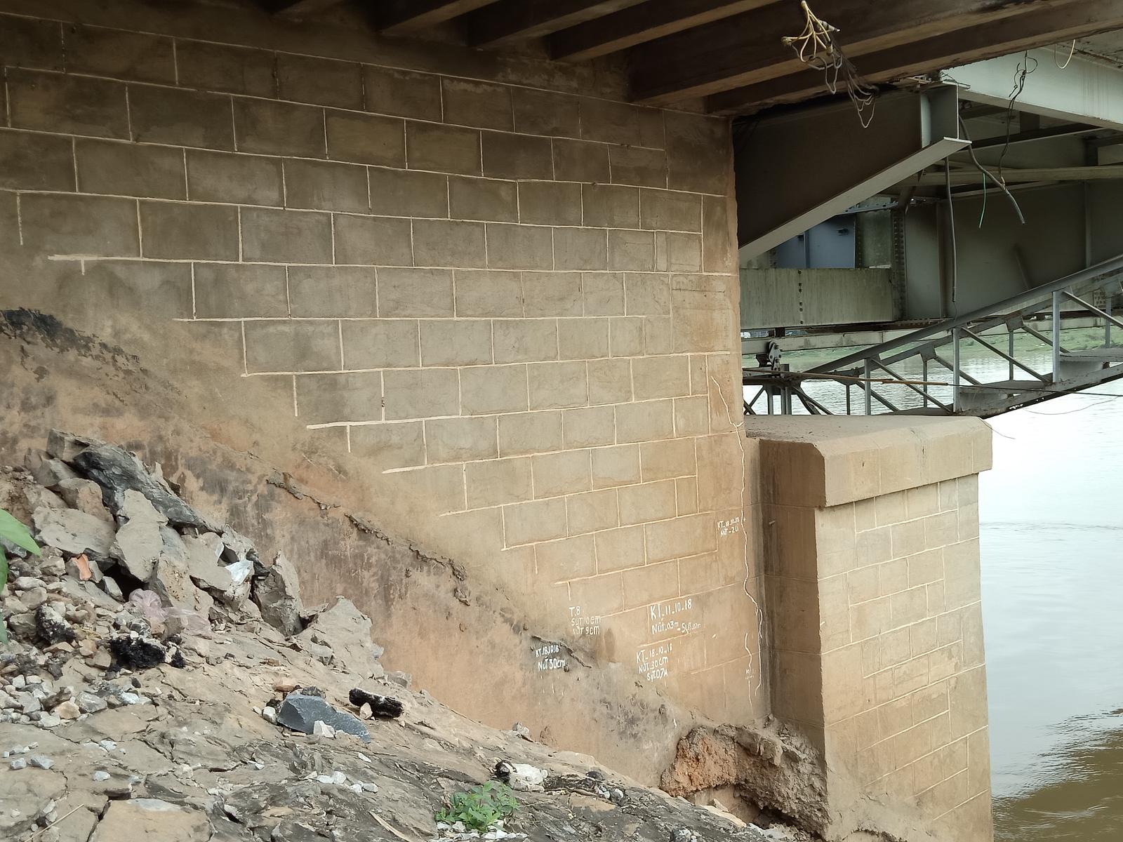 Theo quan sát của PV tại hiện trường sáng ngày 14/11/2018, mố cầu Hàm Rồng phía Nam bị sạt lở nghiêm trọng. Nhiều điểm kè ở chân cầu bị há mồm rộng lớn, đá liên kết bị sạt lở tụt khỏi chân móng. Gỗ từ chân đường sắt cũng bị lòi ra, sắt ở mố bê tông cũng đã hoen gỉ vì đã được làm cách đây nhiều chục năm… Nguy hiểm hiện đang rình rập, hà bá có thể cuốn trôi chân cầu bất cứ lúc nào không hay.