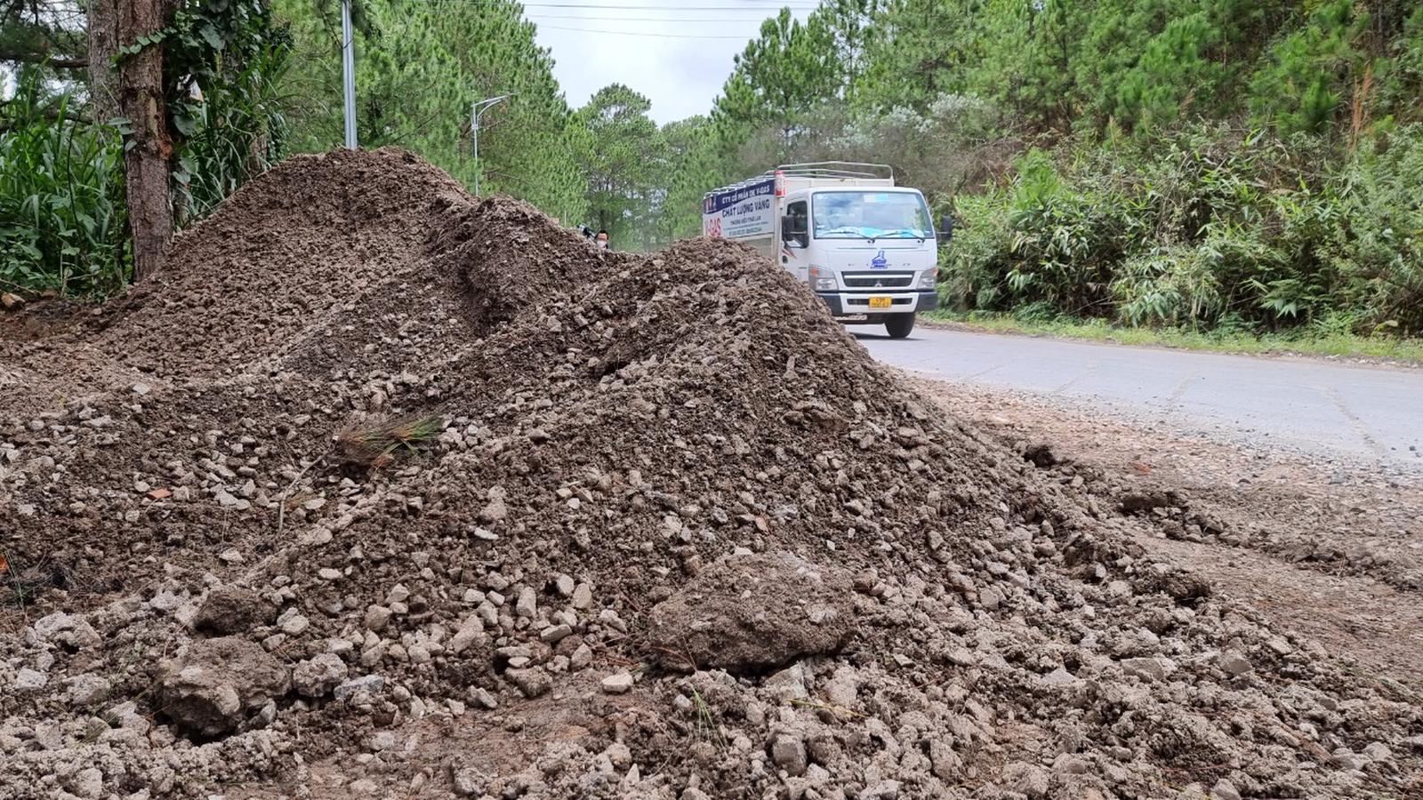 Sở GTVT tỉnh Lâm Đồng yêu cầu đơn vị thi công dọn toàn bộ vật liệu cấp phối không đạt chuẩn ra khỏi công trình. Ảnh: TC