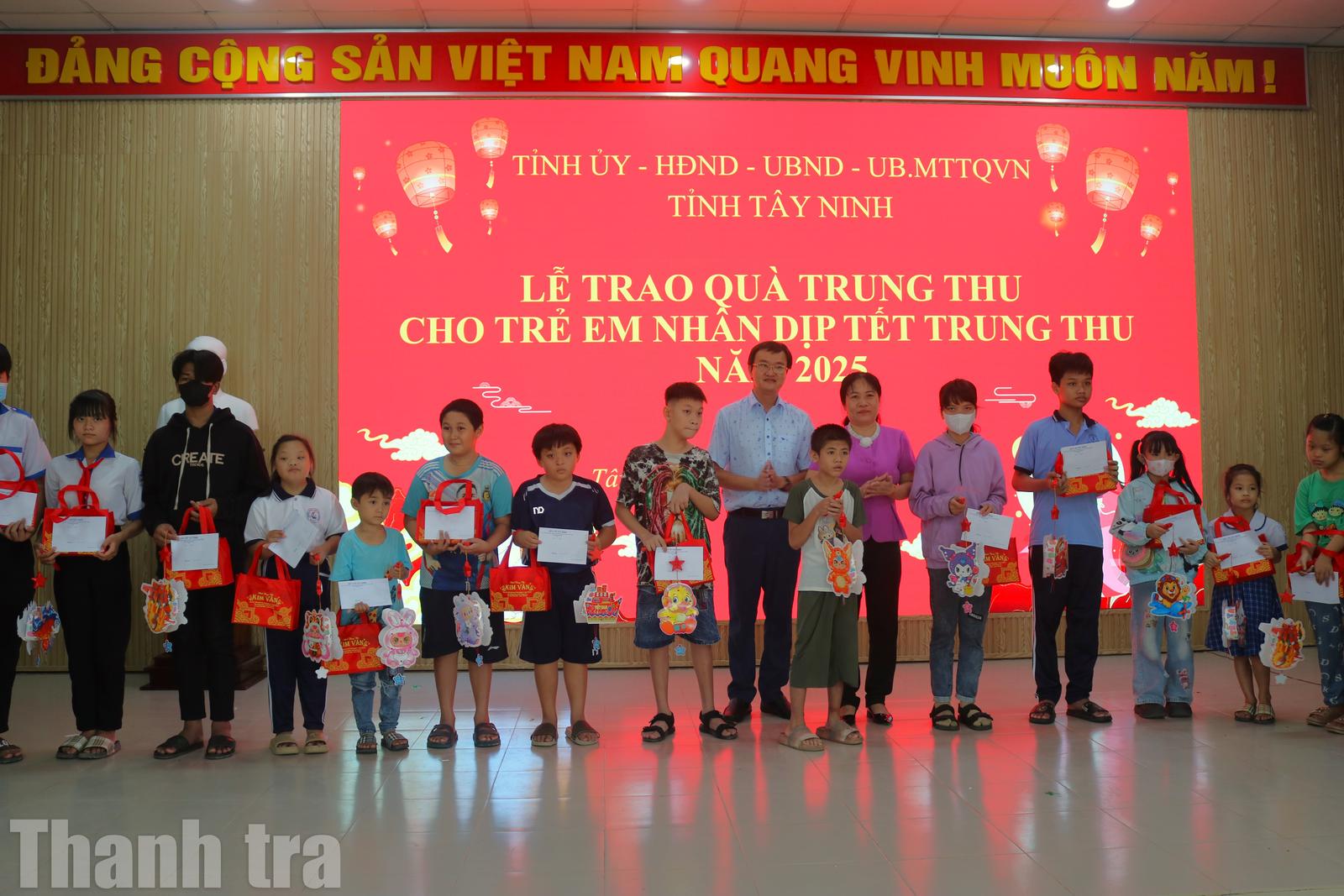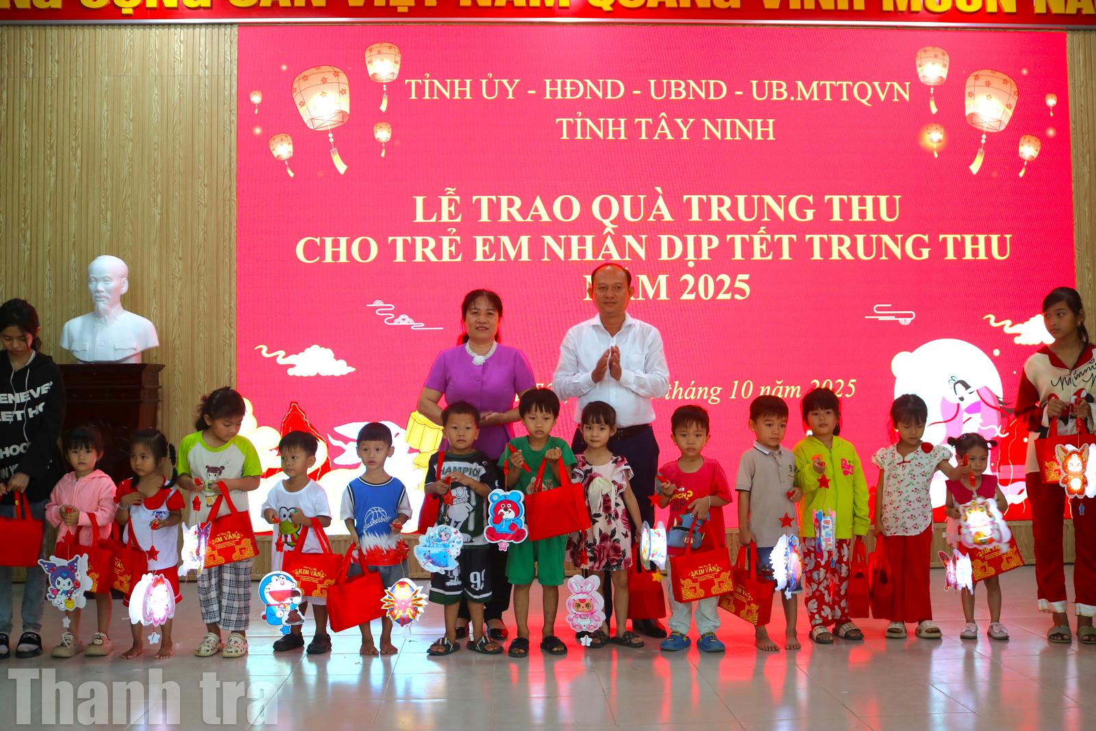 Ngoài những phần quà của tỉnh Tây Ninh trao tặng, UBND xã cũng bố trí ngân sách từ nguồn Quỹ Bảo trợ trẻ em địa phương, đã trao tặng 90 phần quà cho trẻ em có nguy cơ rơi vào hoàn cảnh đặc biệt trên địa bàn, mỗi phần quà trị giá 350 ngàn đồng, gồm bánh trung thu, lồng đèn và 200 ngàn đồng tiền mặt.