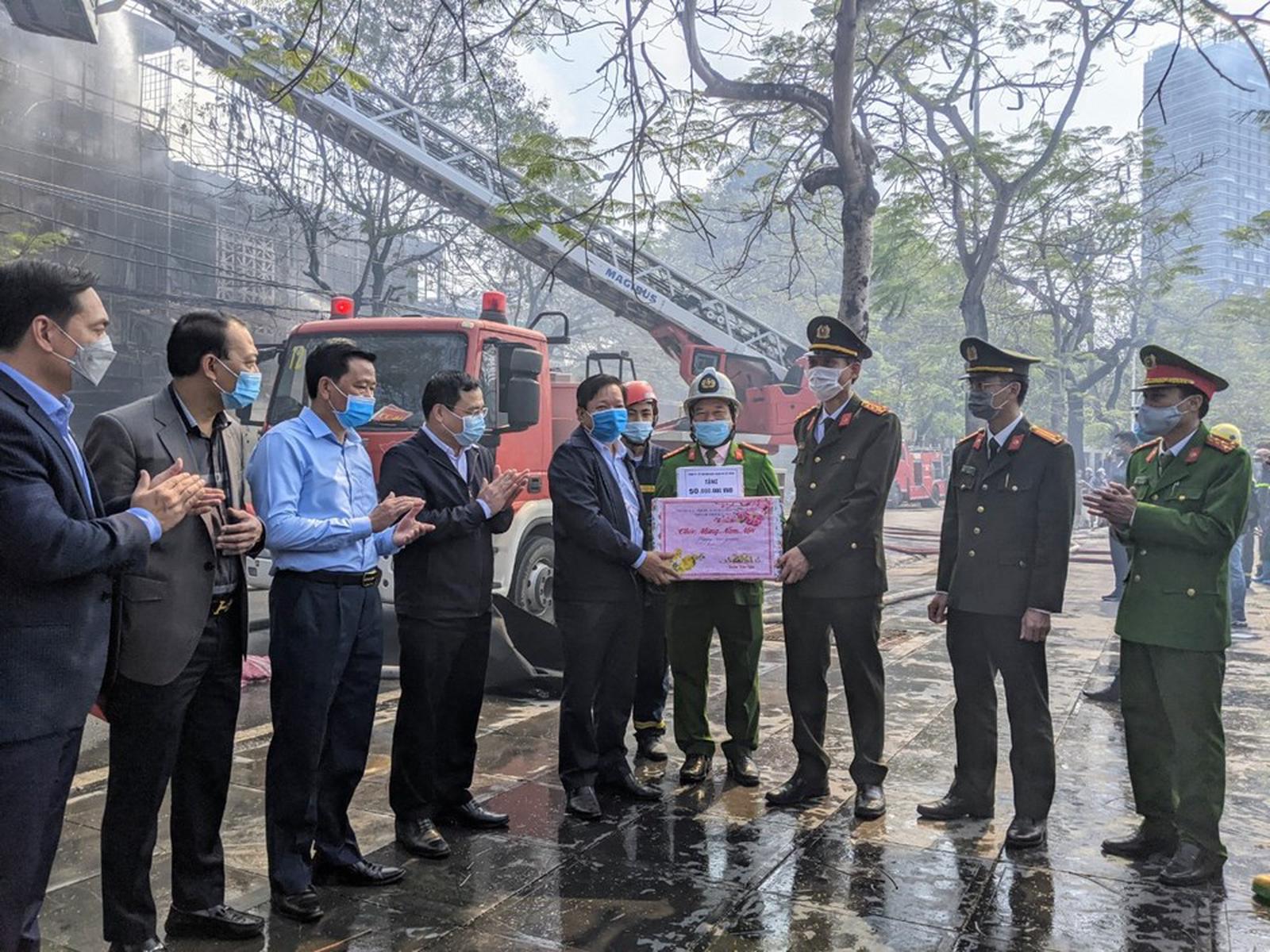 Tại hiện trường, thay mặt lãnh đạo thành phố, Phó Chủ tịch UBND thành phố Nguyễn Đức Thọ biểu dương các lực lượng, đồng thời thưởng nóng cho lực lượng phòng cháy, chữa cháy, Công an thành phố 50 triệu đồng; quận Ngô Quyền thưởng cho các lực lượng 20 triệu đồng.