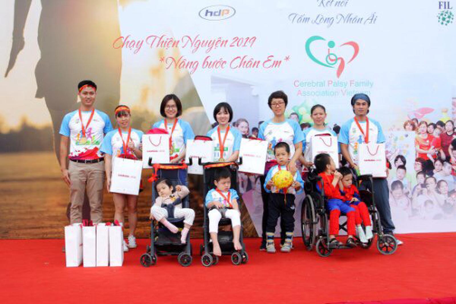 Năm 2019, lần đầu tiên giải chạy thiện nguyện “Nâng bước chân em” được Công ty HDP và CPFAV phối hợp tổ chức. Giải chạy đã thu hút hơn 300 người tham gia, số tiền thu được hơn 133 triệu đồng đã được gây quỹ cho CPFAV để tổ chức các hoạt động khám đánh giá, hỗ trợ dụng cụ tập luyện cho trẻ bại não.