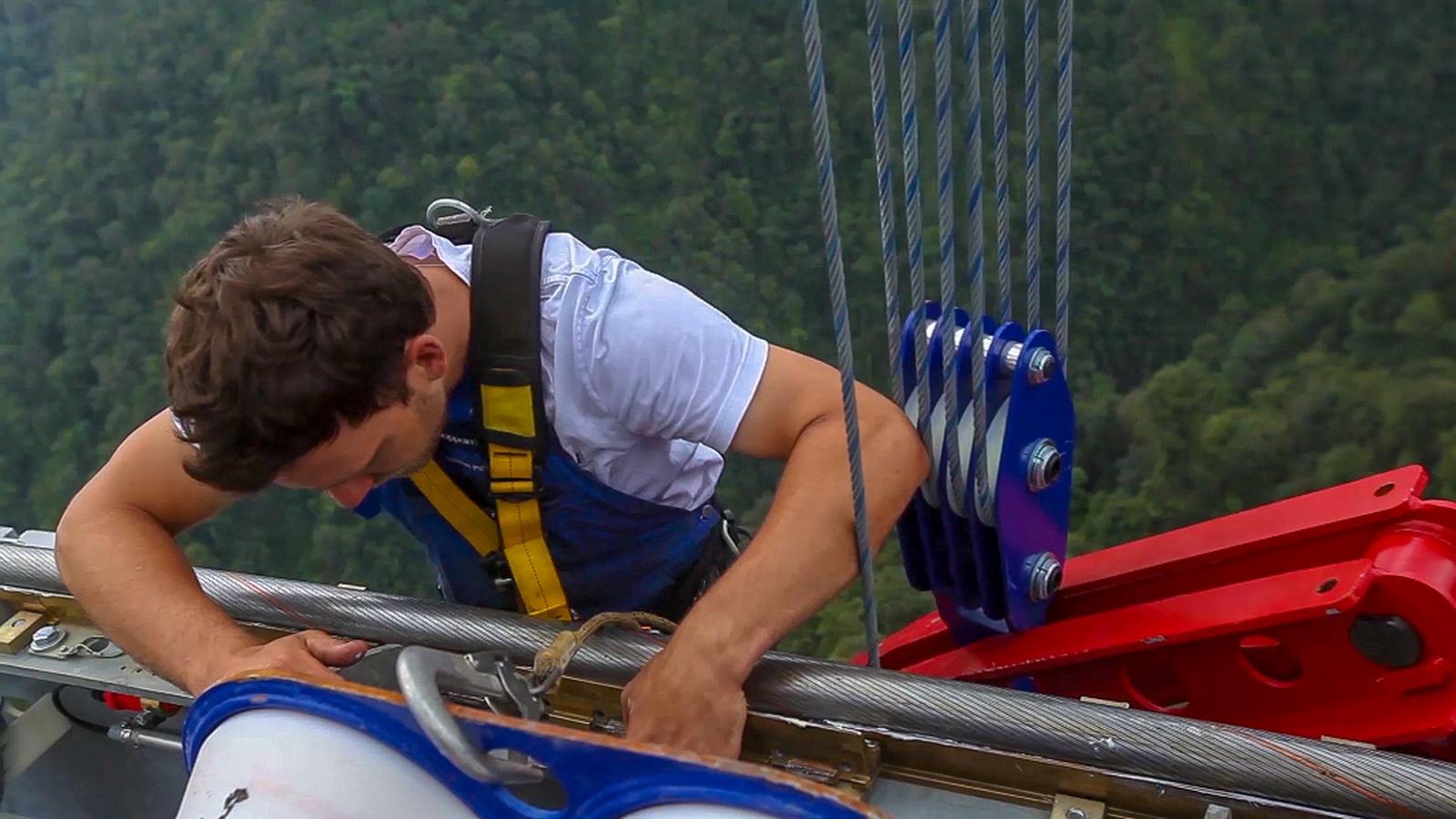 Đây cũng là đoạn phức tạp bậc nhất toàn tuyến 35kV lên đỉnh Fansipan khi nằm giữa hai cột là khe vực sâu hơn 100m và địa hình chủ yếu đều là những vách đá dựng đứng ngợp mắt người. Một nhóm thợ kéo cáp kỳ cựu được huy động khẩn cấp cùng tổ điện của Luật lại vượt núi vào rừng sâu để chinh phục nốt một trong những thách thức cuối cùng.