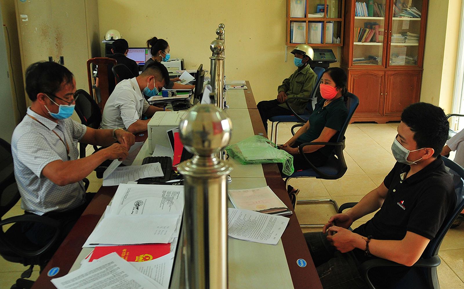 Người dân xã Hán Đà, huyện Yên Bình đến Bộ phận Phục vụ hành chính công xã giải quyết thủ tục hành chính. Ảnh: Quang Thiều
