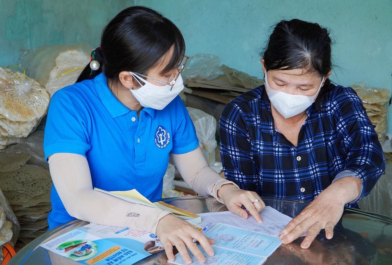 Nhân viên BHXH tuyên truyền, vận động người dân tham gia BHXH tự nguyện. Ảnh nguồn: baoquangnam.vn