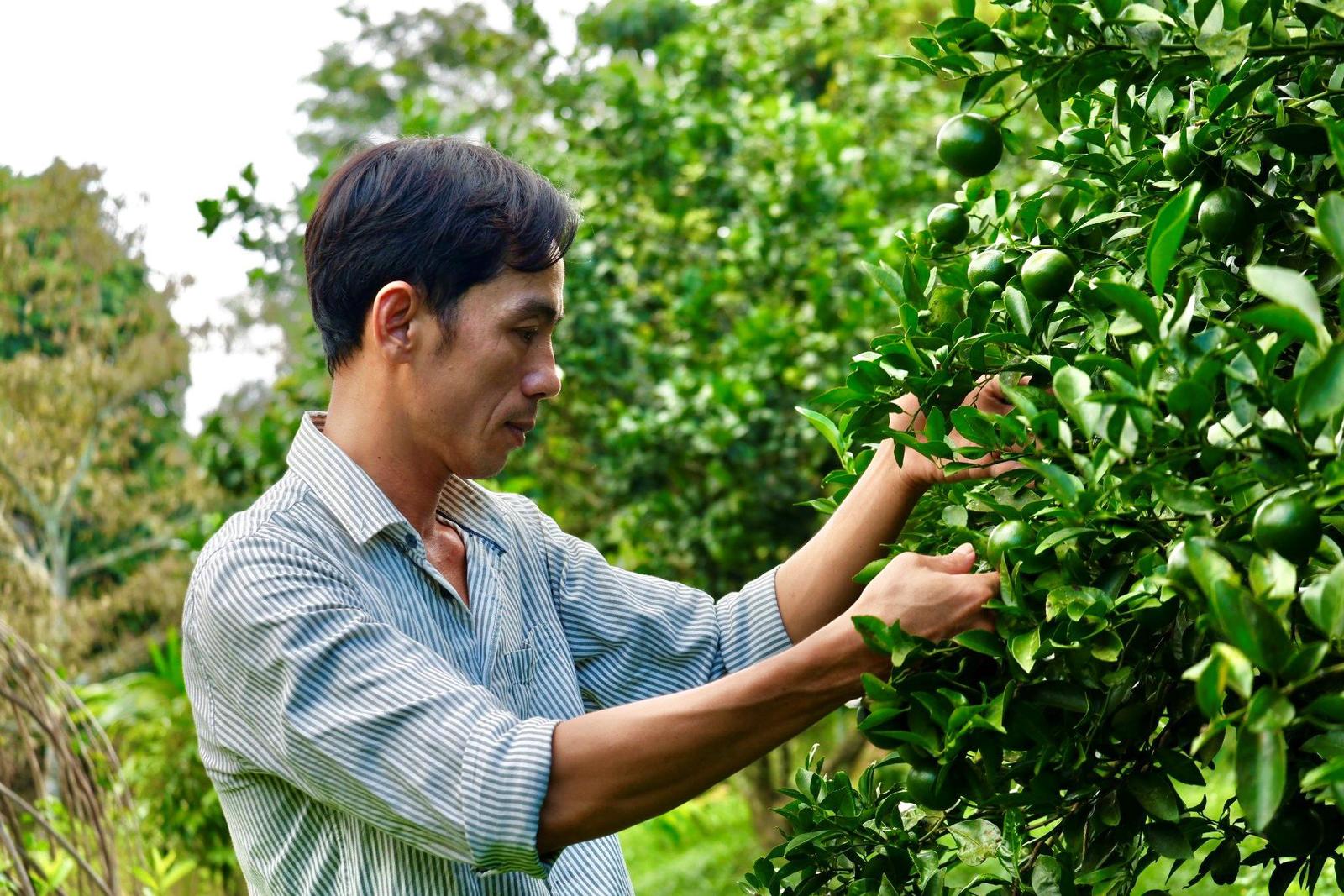 Anh Hà Thắng với vườn quýt đường cho tiền tỷ mỗi năm. Ảnh: Chí Cường