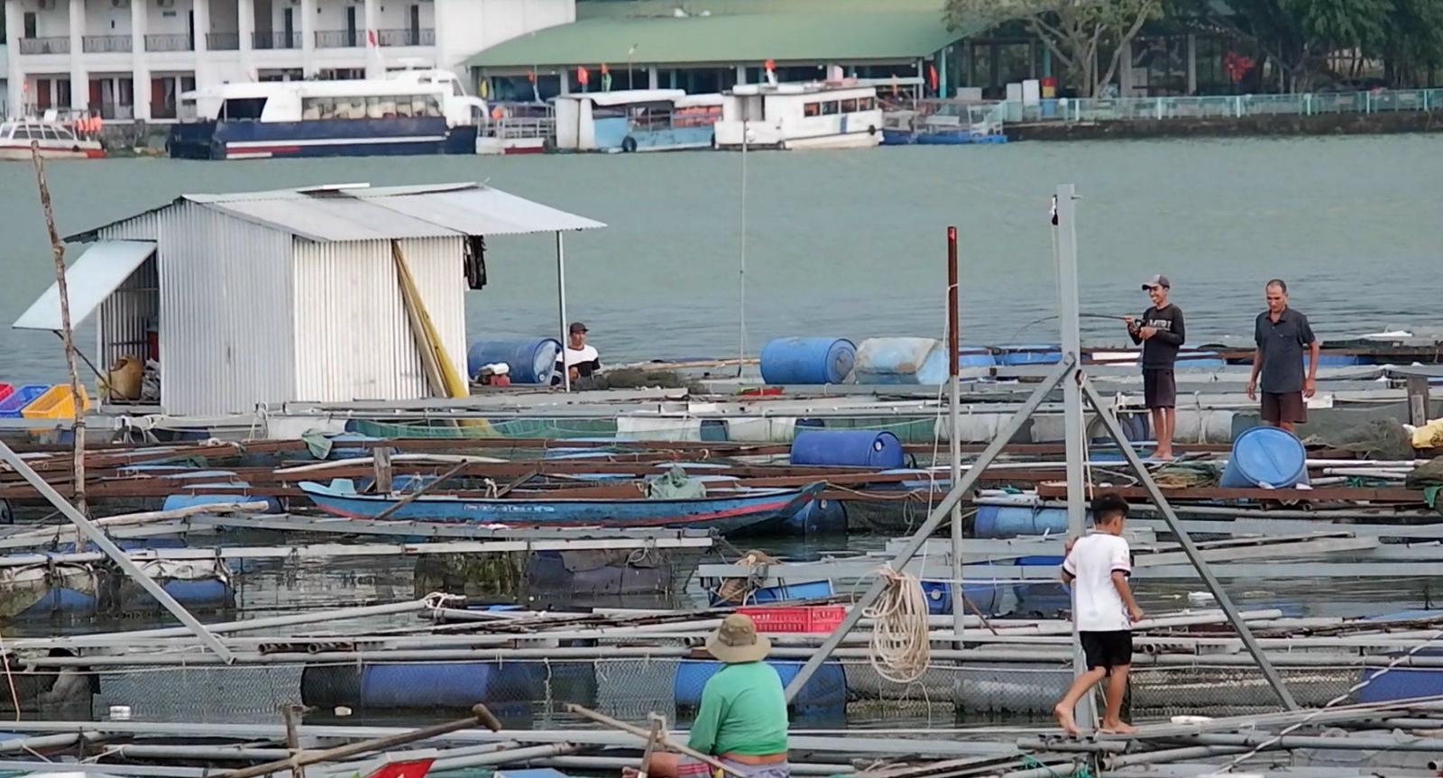 Tại vùng lòng hồ Trị An, nhiều hộ dân xã Mã Đà tham gia nuôi cá lồng bè, có hộ nuôi vài chục lồng cá lăng, cá trắm. Ảnh: Chí Cường