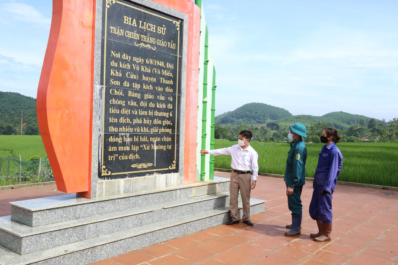 Bia Lịch sử chiến thắng Giáo Vầu được xây dựng nhân dịp kỷ niệm 70 năm thành lập Đảng bộ huyện Thanh Sơn (5/1947-5/2017) nhằm khắc ghi truyền thống cách mạng hào hùng của cha ông. Ảnh: Vũ Thanh