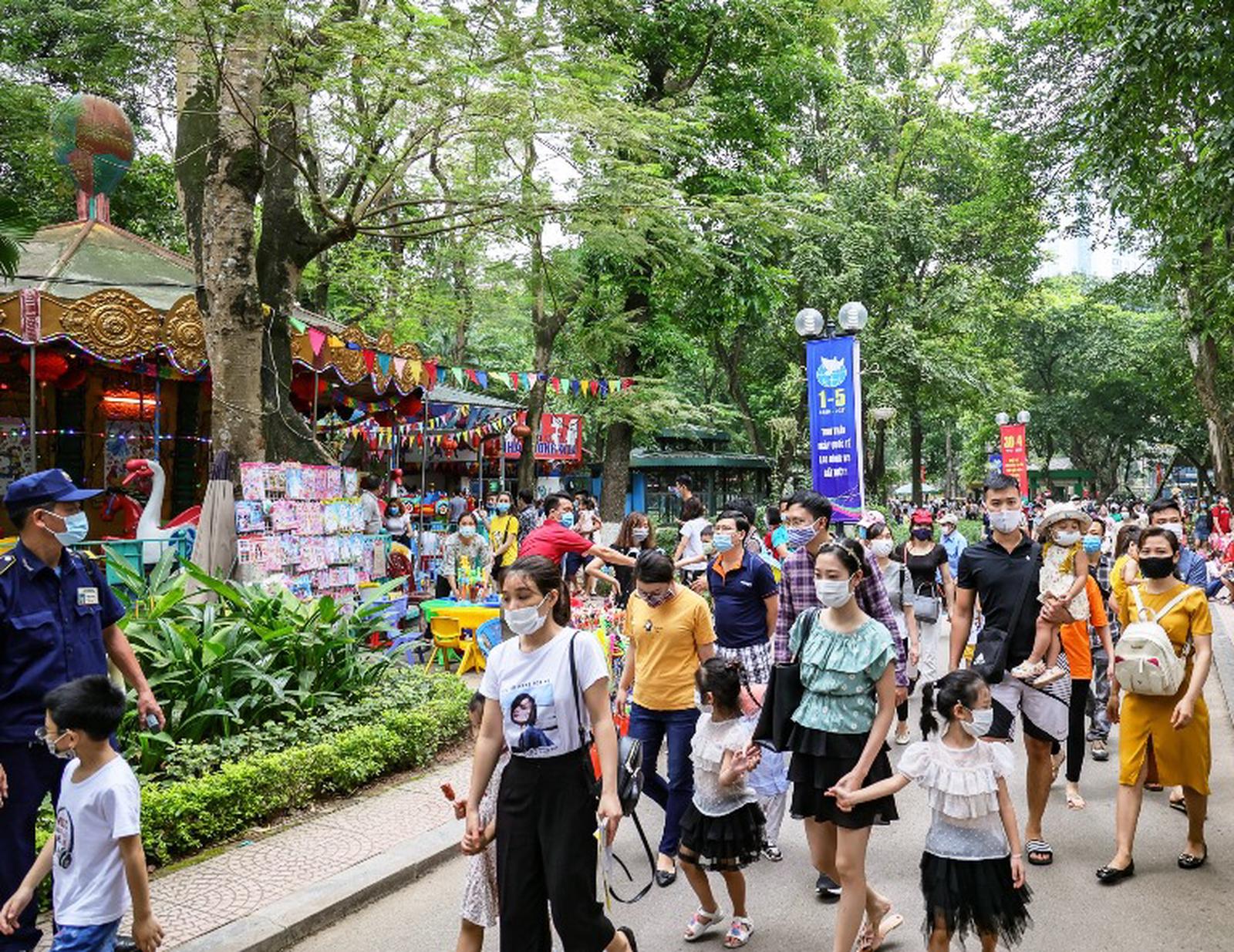 Lượng người đổ về Công viên Thủ Lệ rất đông trong dịp lễ. Ảnh: T.N