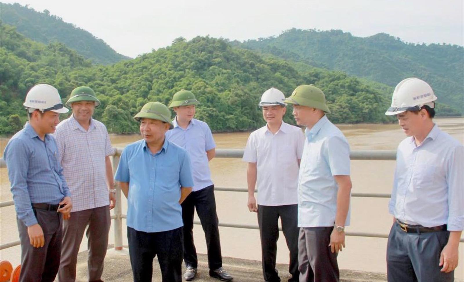 Lãnh đạo tỉnh kiểm tra việc vận hành hồ chứa thủy điện Khe Bố, huyện Tương Dương. Ảnh: ĐT