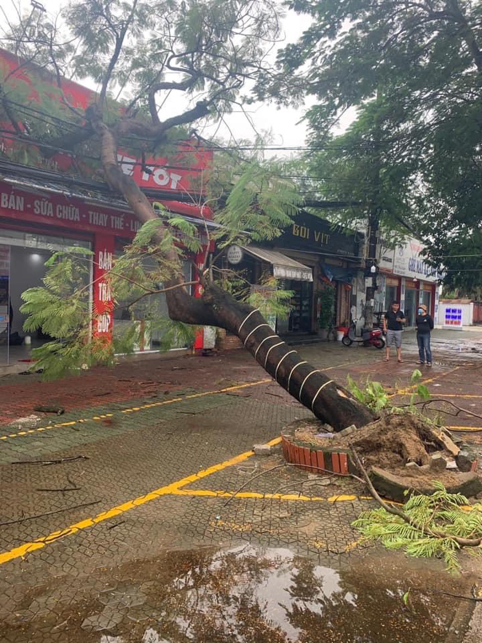 Mưa lớn, gió to làm cây cối bật gốc trên địa bàn TP Vinh. Ảnh: Thanh Lĩnh