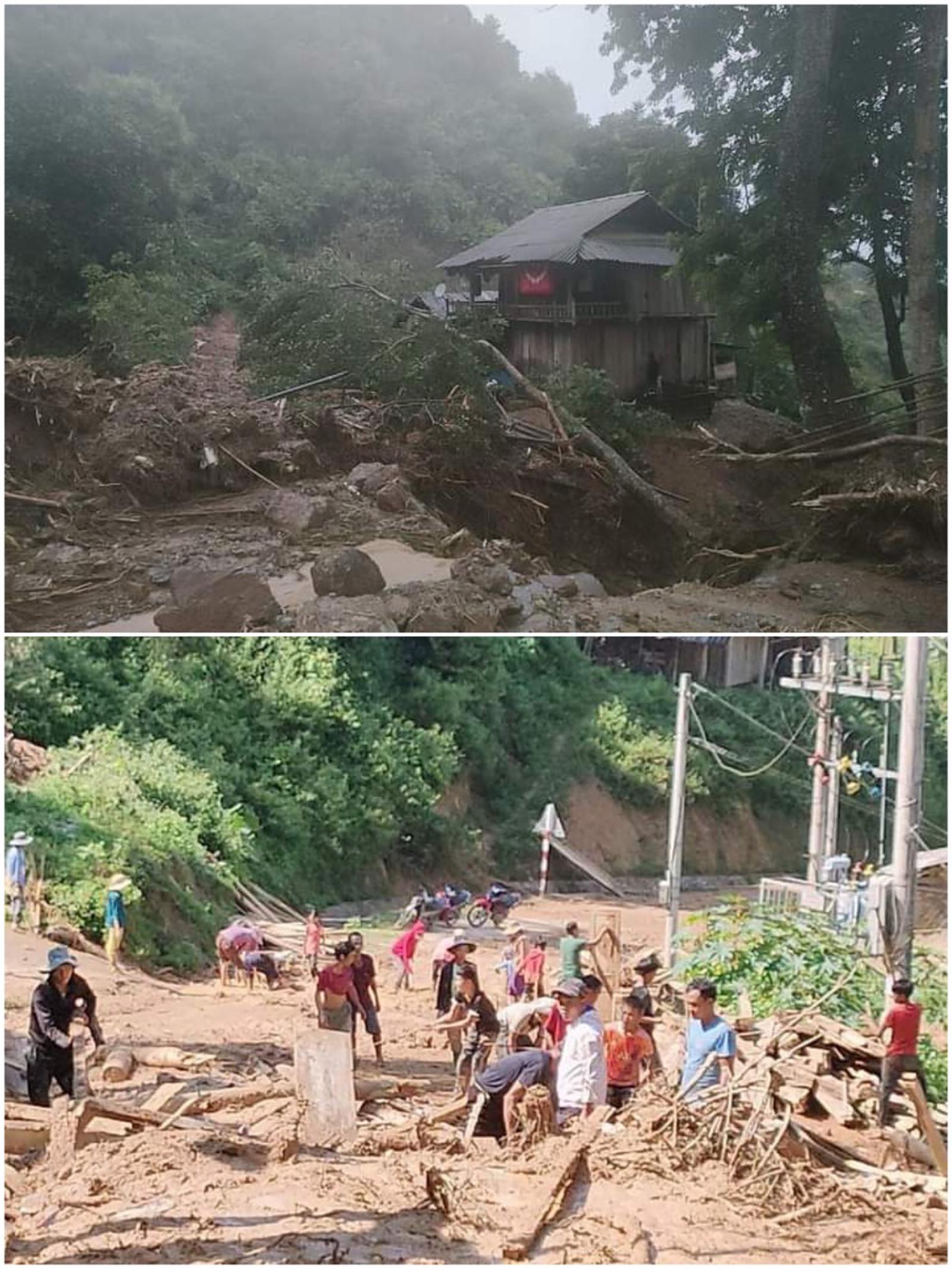 Tại huyện biên giới Kỳ Sơn mưa lơn kéo dài ngày nay khiến nhiều nơi bị sạt lở nặng, đất đá bồi lấp, giao thông bị chia cắt. Ảnh: DT