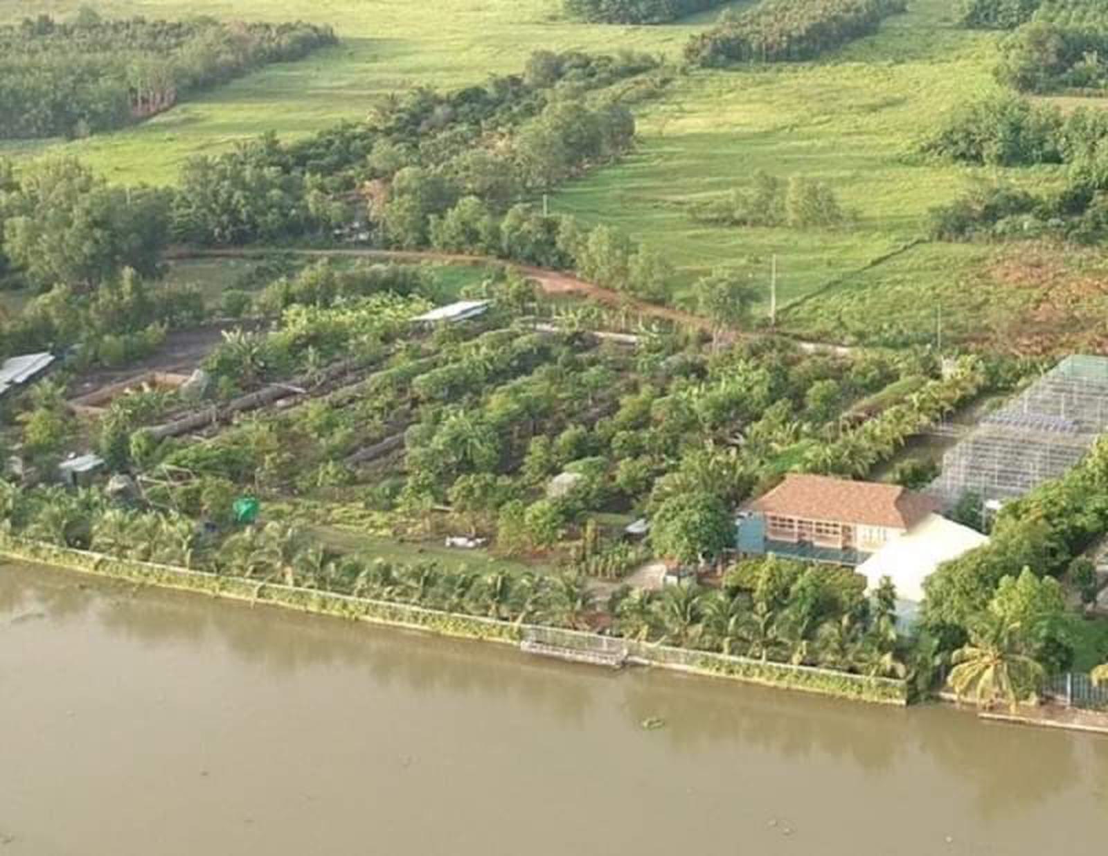 Khu nhà vườn 0,9ha của bà H nhìn từ trên cao cho thấy có nhiều công trình xây dựng (Hình chụp đầu tháng 6/2020)