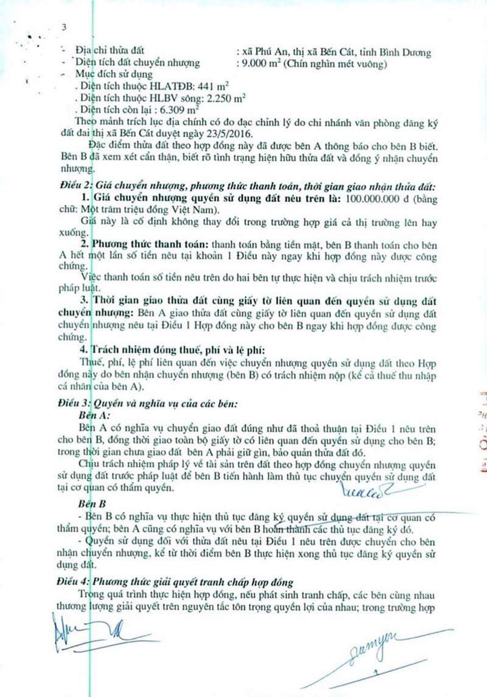 Hai bên mua bán với giá rẻ bất thường; 0,9ha đất nhưng giao dịch chỉ 100 triệu đồng. Trong khi đó, theo giá thị trường, ước tính khu đất thời điểm đó phải có giá nhiều tỷ. Hai bên thống nhất bà H đóng các loại thuế, phí, lệ phí!