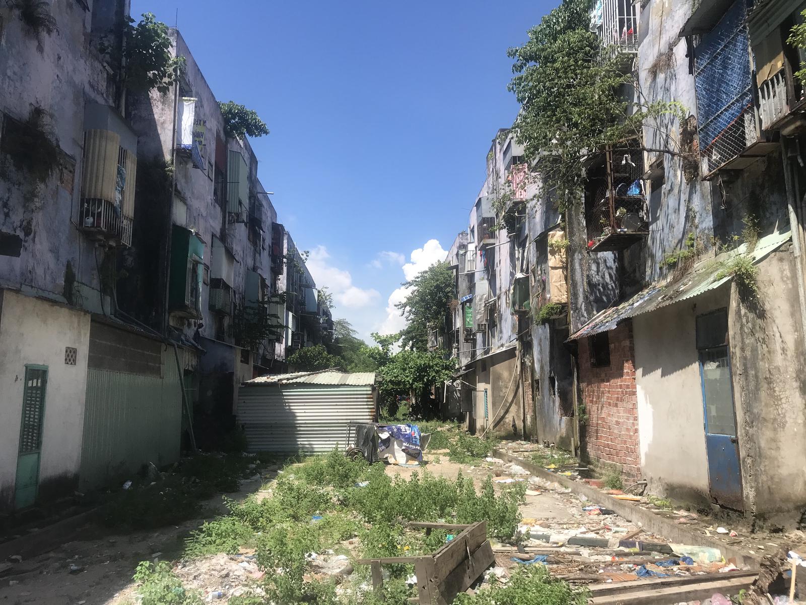 Chung cư Hoà Minh xuống cấp nghiêm trọng nhưng chưa di dời được. Ảnh: N.P