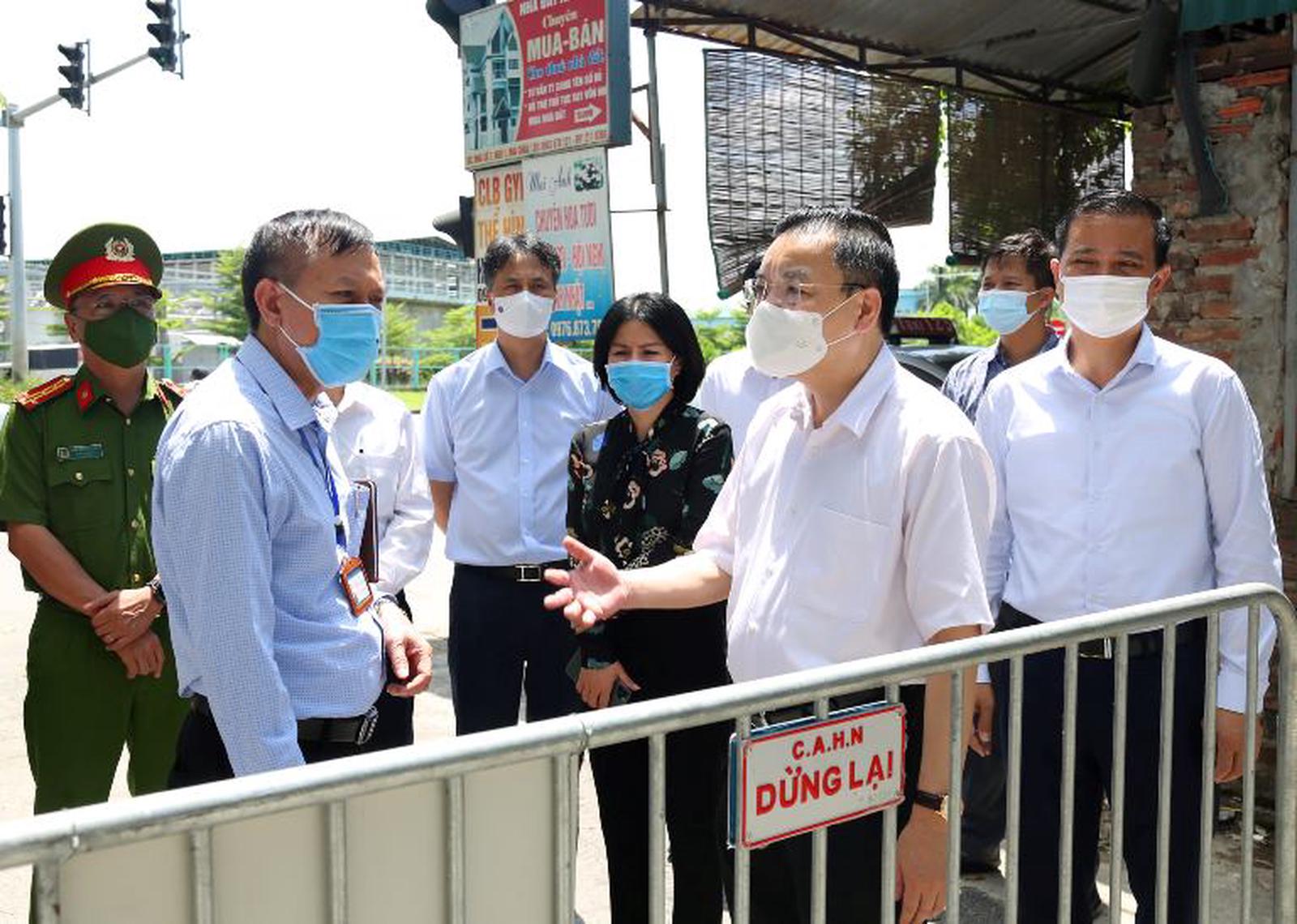 Chủ tịch TP Hà Nội Chu Ngọc Anh đi kiểm tra công tác phòng, chống dịch Covid-19 trên địa bàn. Ảnh: PV