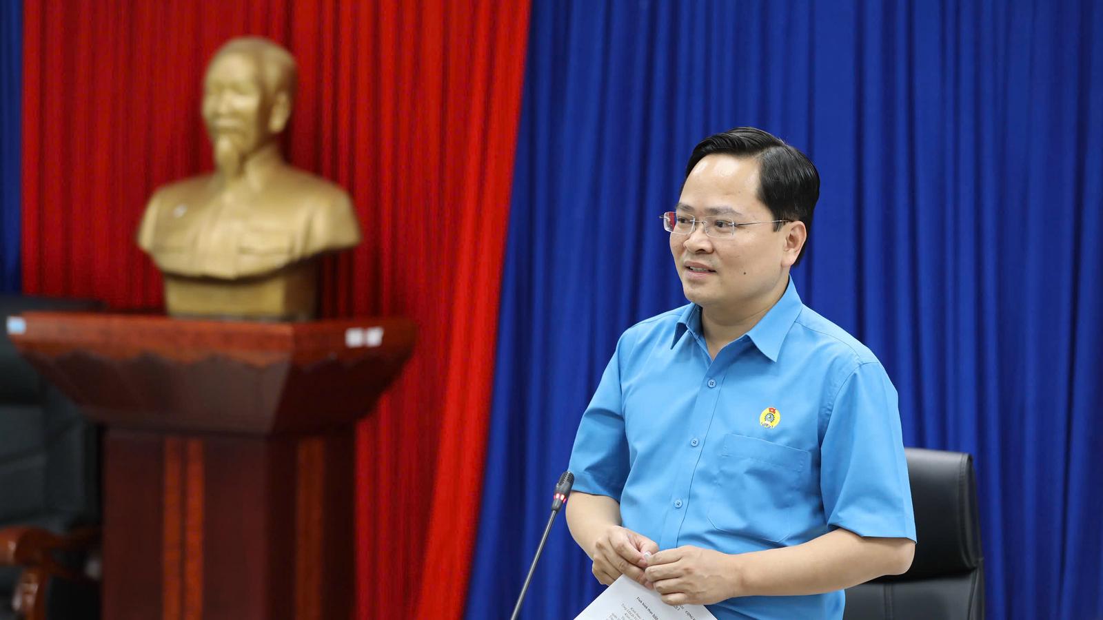 Đồng chí Nguyễn Anh Tuấn, Ủy viên Ban Chấp hành Trung ương Đảng, Chủ tịch Tổng Liên đoàn Lao động (LĐLĐ) Việt Nam phát biểu tại buổi làm việc