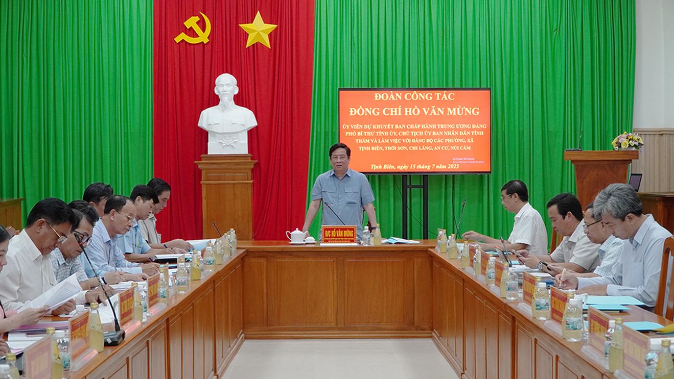 (Thanh tra) - Ngày 15/7, Chủ tịch UBND tỉnh An Giang Hồ Văn Mừng dẫn đầu đoàn công tác đến kiểm tra tình hình hoạt động 4 phường: Thới Sơn, Tịnh Biên, Chi Lăng, An Cư và xã Núi Cấm sau sáp nhập tỉnh và thực hiện theo mô hình chính quyền 2 cấp.