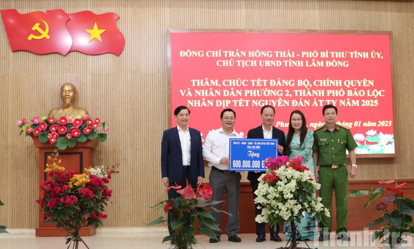 Tại UBND Phường 2, thành phố Bảo Lộc, Chủ tịch UBND tỉnh Lâm Đồng Trần Hồng Thái thăm hỏi về công tác chuẩn bị các điều kiện cho Nhân dân chuẩn bị vui Xuân, đón Tết Nguyên đán Ất tỵ 2025. Đặc biệt là công tác chăm lo cho gia đình chính sách, người có công, các gia đình khó khăn, học sinh khó khăn cả về vật chất, lẫn tinh thần.