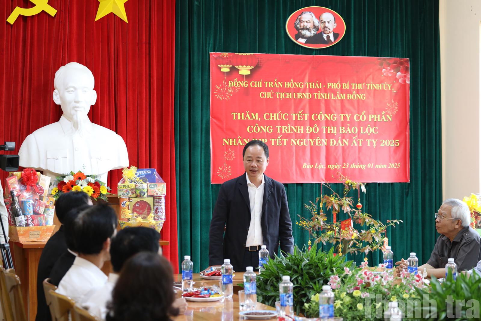 Dịp này, Chủ tịch UBND tỉnh Trần Hồng Thái đã gửi lời chúc cán bộ, công nhân Công ty Cổ phần Đô thị Bảo Lộc đón một năm mới sức khỏe, hạnh phúc, thắng lợi. Đồng thời, tiếp tục nỗ lực hoàn thành xuất sắc nhiệm vụ được giao, góp phần giữ gìn, bảo vệ môi trường xanh, sạch, đẹp.