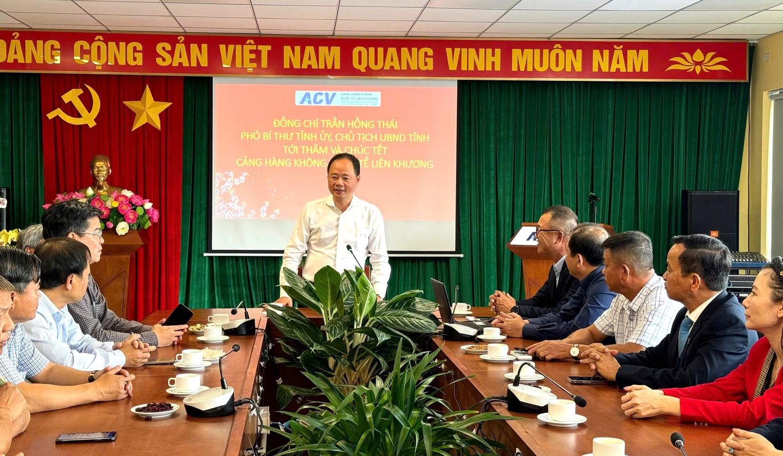 Chiều cùng ngày, Chủ tịch UBND tỉnh Lâm Đồng Trần Hồng Thái cùng đoàn công tác cũng đã tới thăm, chúc Tết và kiểm tra công tác chuẩn bị phục vụ du khách dịp Tết Nguyên đán Ất tỵ 2025 tại Cảng hàng không quốc tế Liên Khương.