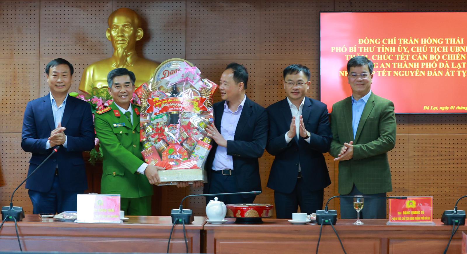 Cũng nhân dịp đầu Xuân năm mới, Chủ tịch UBND tỉnh Trần Hồng Thái cũng đã đến thăm và chúc Tết cán bộ, chiến sĩ Công an thành phố Đà Lạt. Người đứng đầu UBND tỉnh Lâm Đồng ghi nhận và biểu dương những đóng góp của lực lượng Công an trong công tác đảm bảo an ninh trật tự trên địa bàn thành phố Đà Lạt trong năm qua, và đặc biệt là trong dịp Tết Nguyên đán Ất Tỵ 2025.
