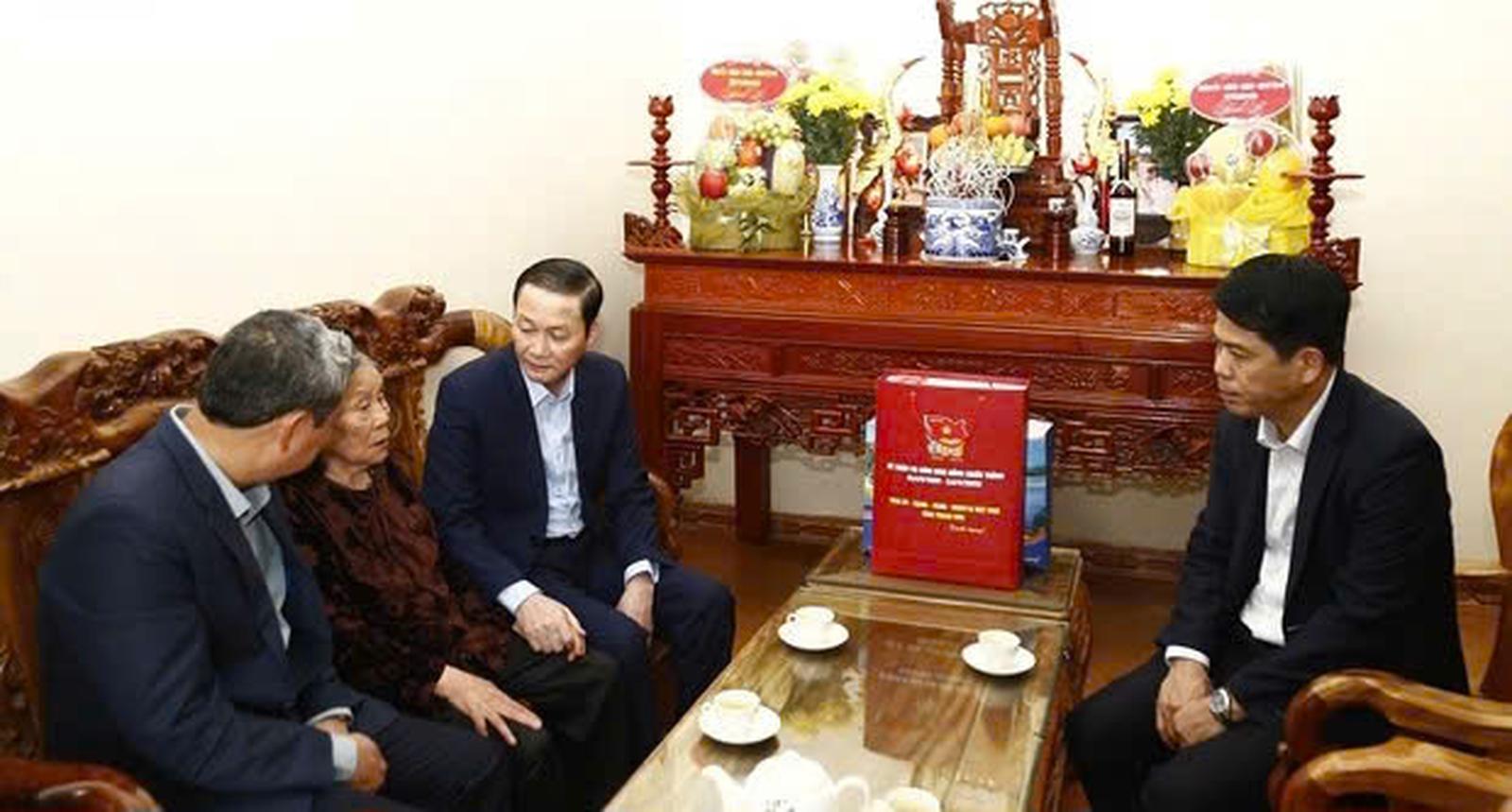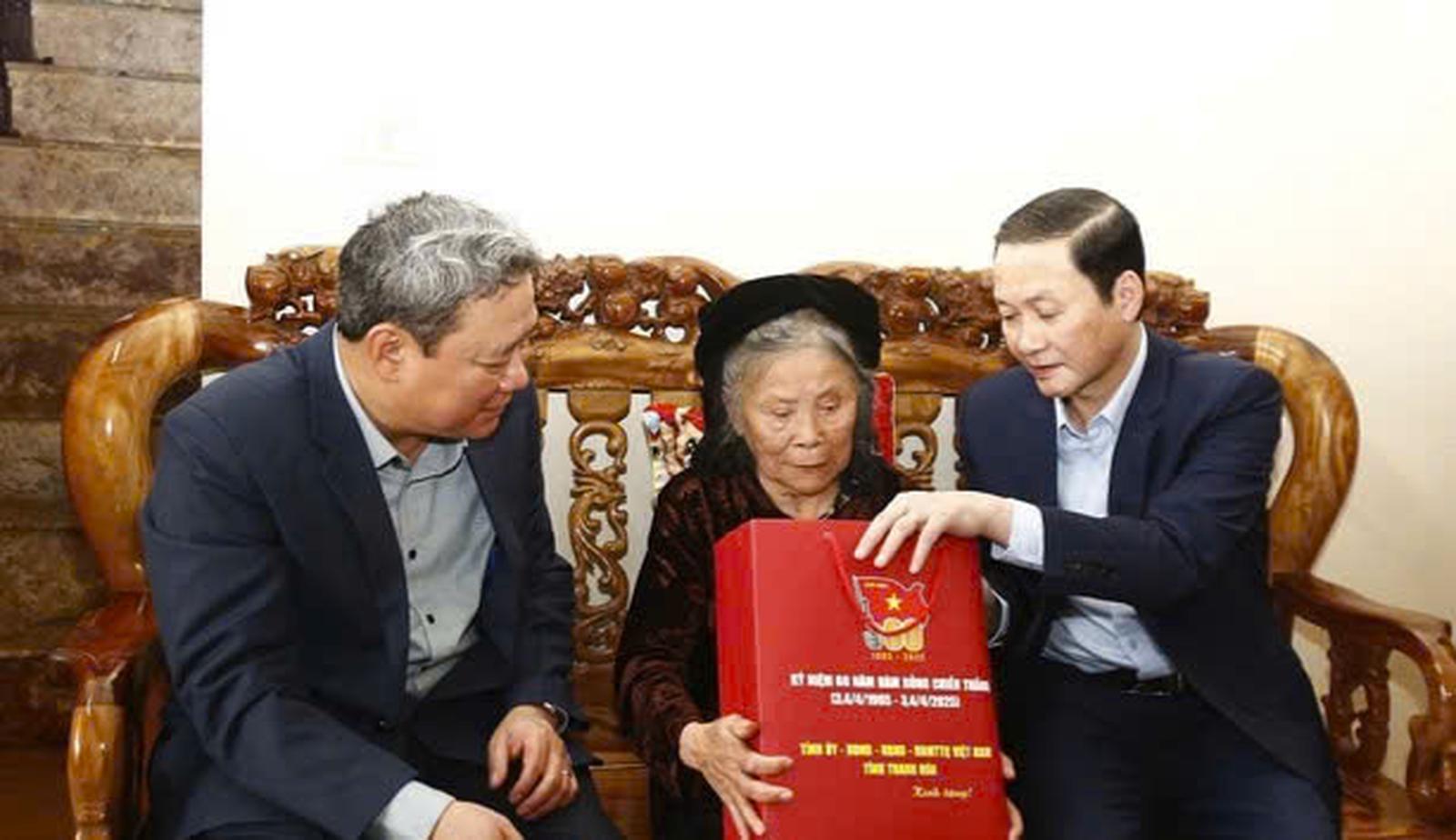 Chủ tịch UBND tỉnh Thanh Hóa và Bí thư Thành ủy TP Thanh Hóa tặng quà bà Nguyễn Thị Tàu là vợ liệt sĩ Hoàng Văn Sáng. Ảnh: P.V