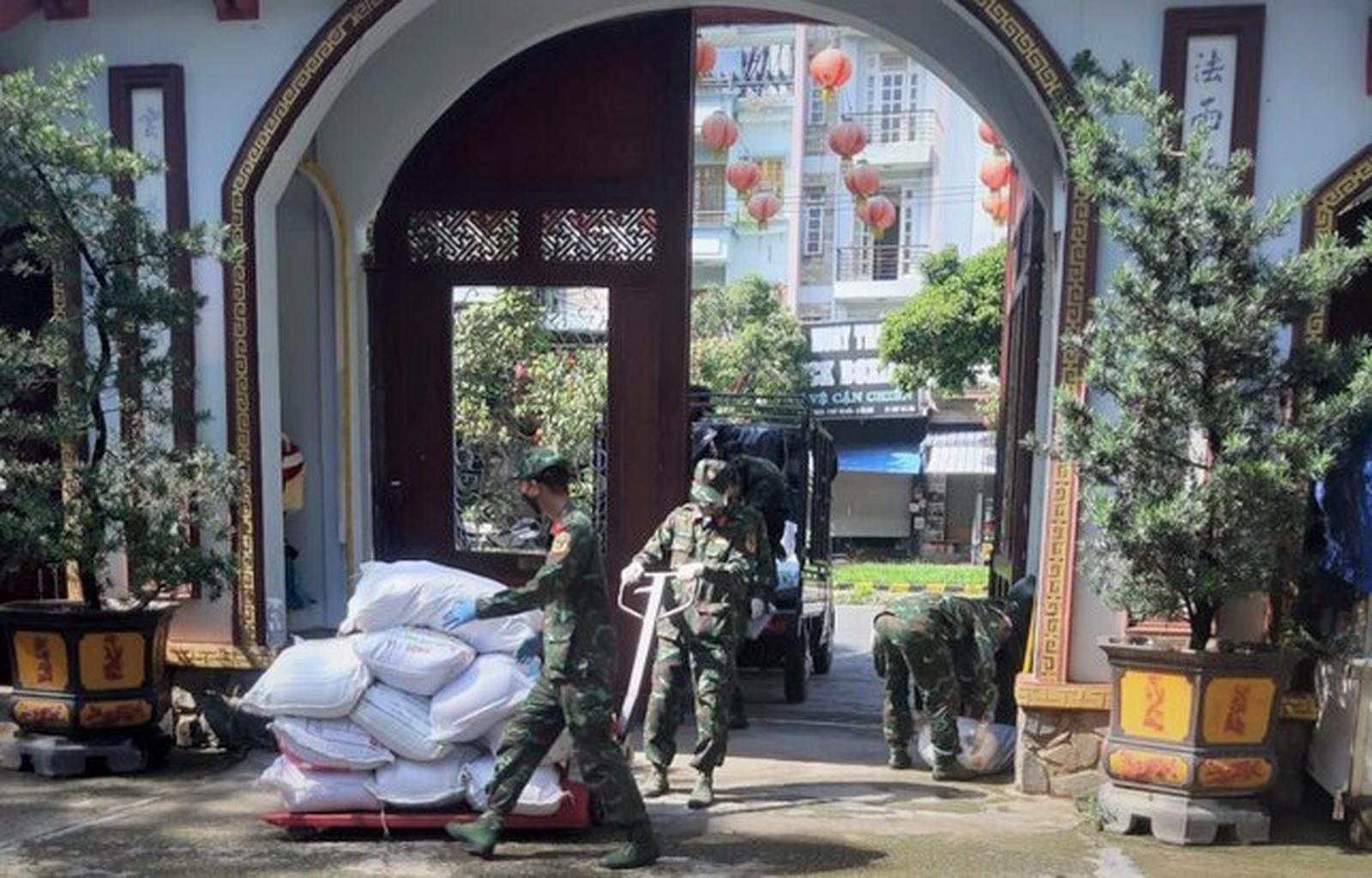Từ ngày 12/8 đến 31/8, chùa Pháp Vân (quận Tân Phú, TP HCM) đã chia sẻ những khó khăn với người dân thành phố thông qua các lực lượng tình nguyện, lực lượng quân đội tại địa phương.