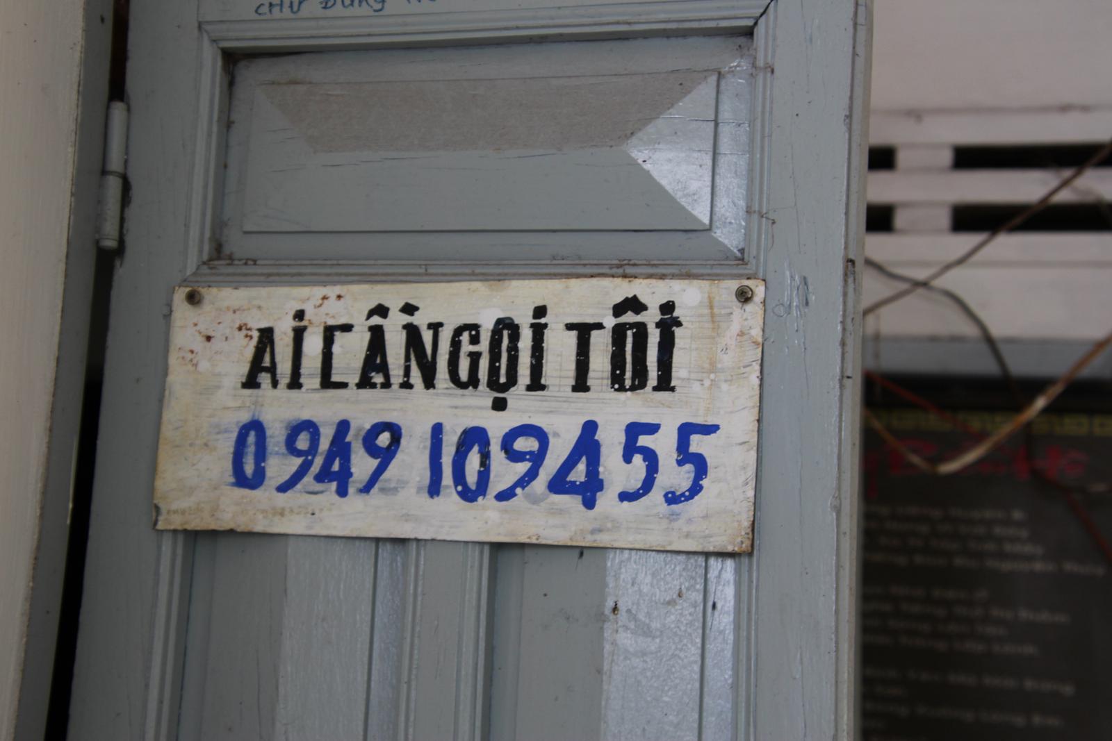 Để thuận lợi, ông ghi số điện thoại trước cánh cửa để ai cần sẽ gọi ông. Ảnh: MT