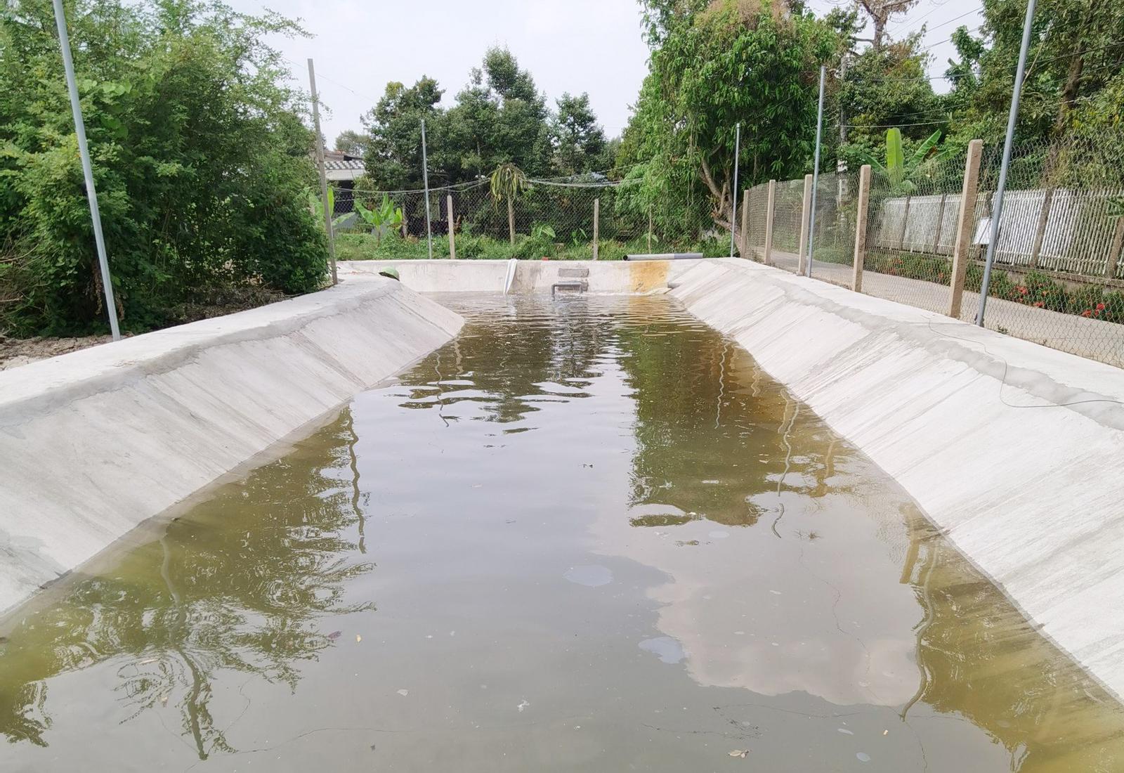 Mô hình đào ao, xây hồ trữ nước ngọt tại Bến Tre. Ảnh: Thái Hùng