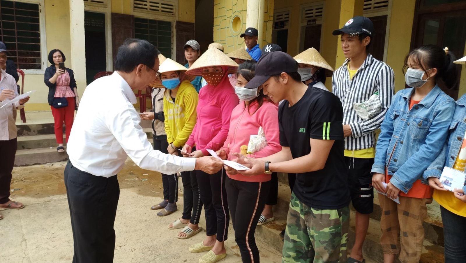 Số tiền trên đã trực tiếp trao tận tay các gia đình bị thiệt hại nặng tại các xã Dân Hoá, Tân Hoá (huyện Minh Hoá - tỉnh Quảng Bình), xã Kỳ Lợi, phường Kỳ Thịnh (huyện Kỳ Anh - tỉnh Hà Tĩnh) mỗi gia đình được nhận 1.000.000 đồng tiền mặt. Mỗi gia đình tại các xã Cẩm Thạch, Cẩm Bình, Cẩm Mỹ (huyện Cẩm Xuyên - tỉnh Hà Tĩnh) nhận 500.000 đồng. Ngoài ra, đoàn đi thăm chia buồn với 2 gia đình liệt sỹ là bộ đội ở Đoàn Kinh tế Quốc phòng 337 đã hy sinh khi giúp bà con nhân dân khắc phục hậu quả bão lũ và 3 gia đình có người chết trong lũ tại xã Thạch Thắng (huyện Thạch Hà), xã Kỳ Hoa (huyện Kỳ Anh), tỉnh Hà Tĩnh và xã Hoá Hợp (huyện Minh Hoá - tỉnh Quảng Bình), mỗi gia đình được nhận 1.000.000 đồng. Riêng gia đình cháu bé bị đuối nước ở xã Thạch Thắng, huyện Thạch Hà, tỉnh Hà Tình có hoàn cảnh đặc biệt khó khăn được nhận 2.000.000 ₫.