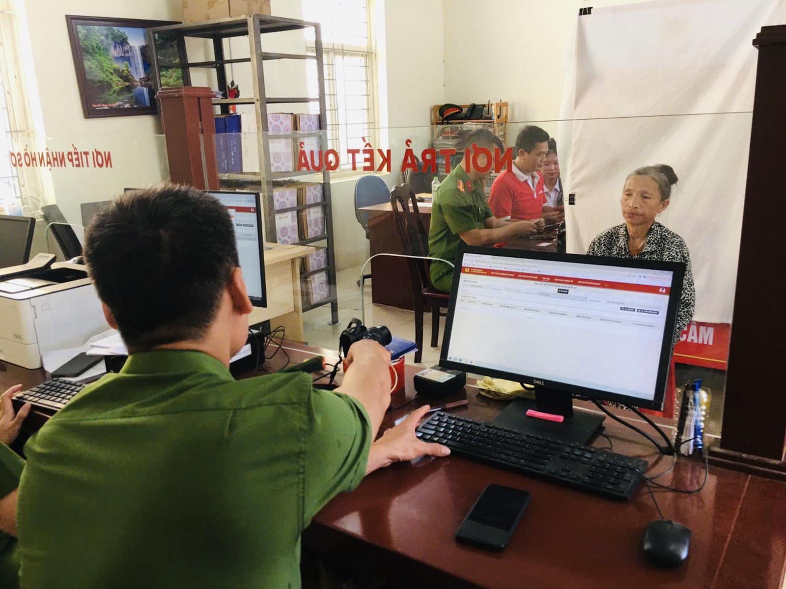Công an xã Yên Nhân trực tiếp hỗ trợ, tư vấn, cài đặt, kích hoạt định danh điện tử cho từng người dân. Ảnh: Công an Thanh Hoá