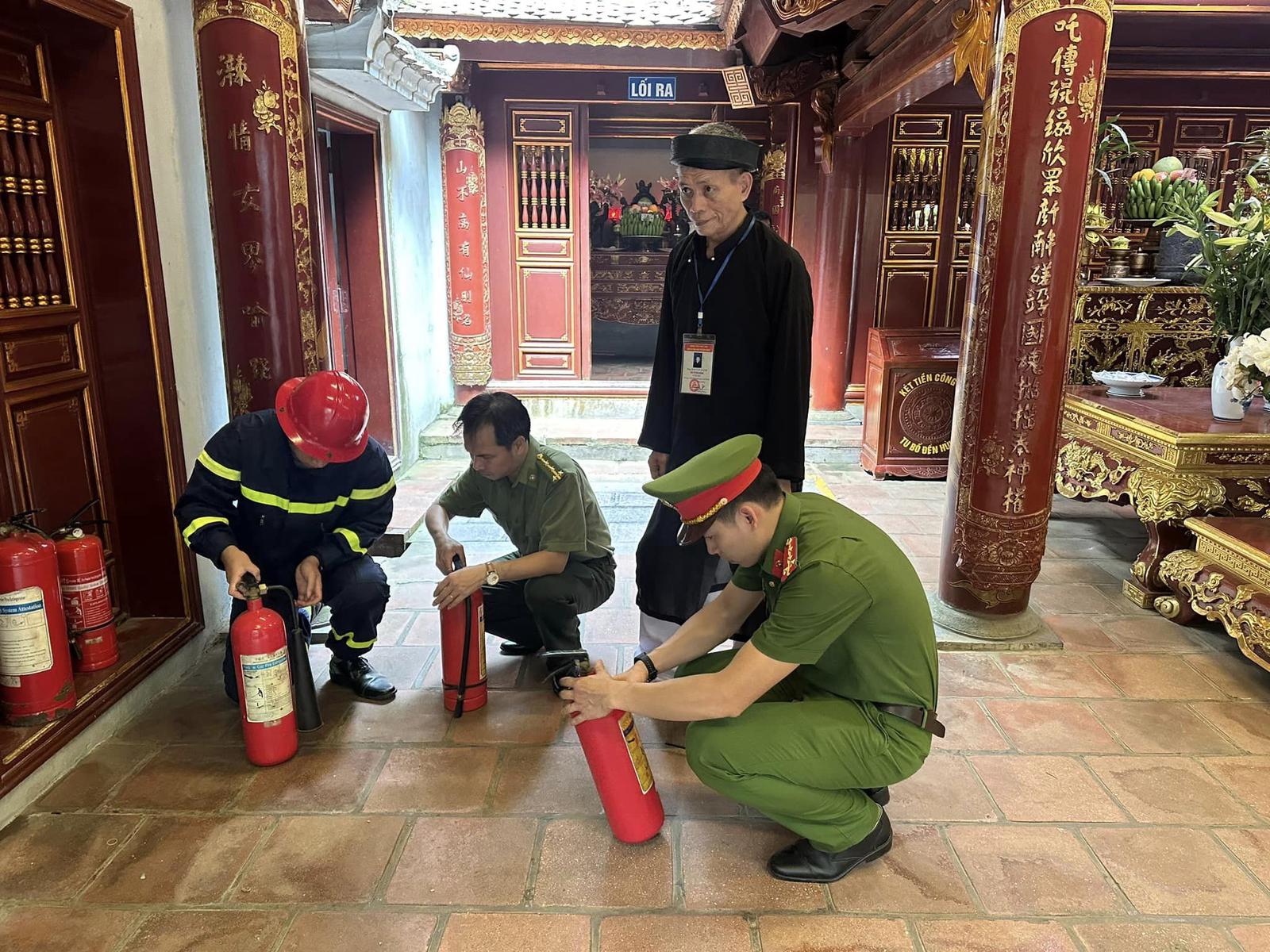 Lực lượng Cảnh sát PCCC&CNCH, Công an tỉnh Phú Thọ thường xuyên kiểm tra, tuyên truyền nhắc nhở đảm an toàn phòng cháy tại khu vực Đền Hùng. Ảnh: ND