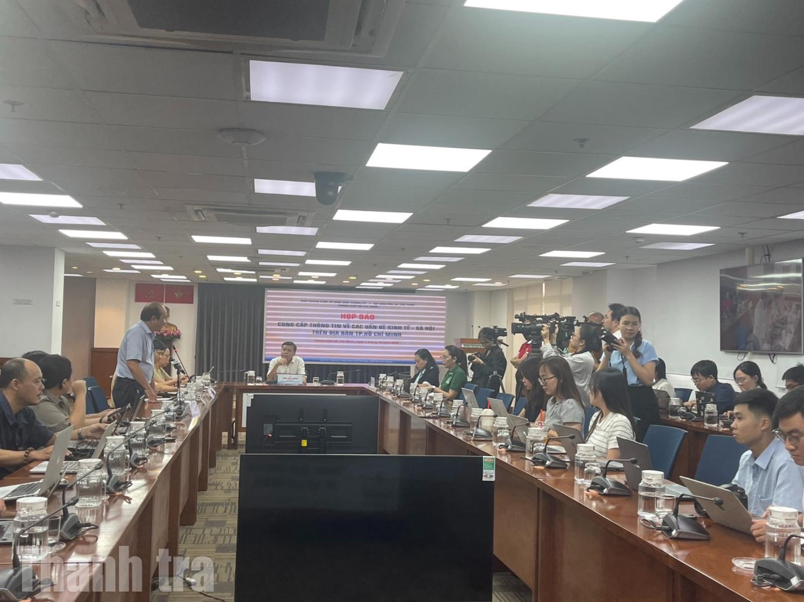 Quang cảnh buổi họp báo thông tin về các vấn đề kinh tế - xã hội trên địa bàn TP Hồ Chí Minh. Ảnh: Thu Huyền