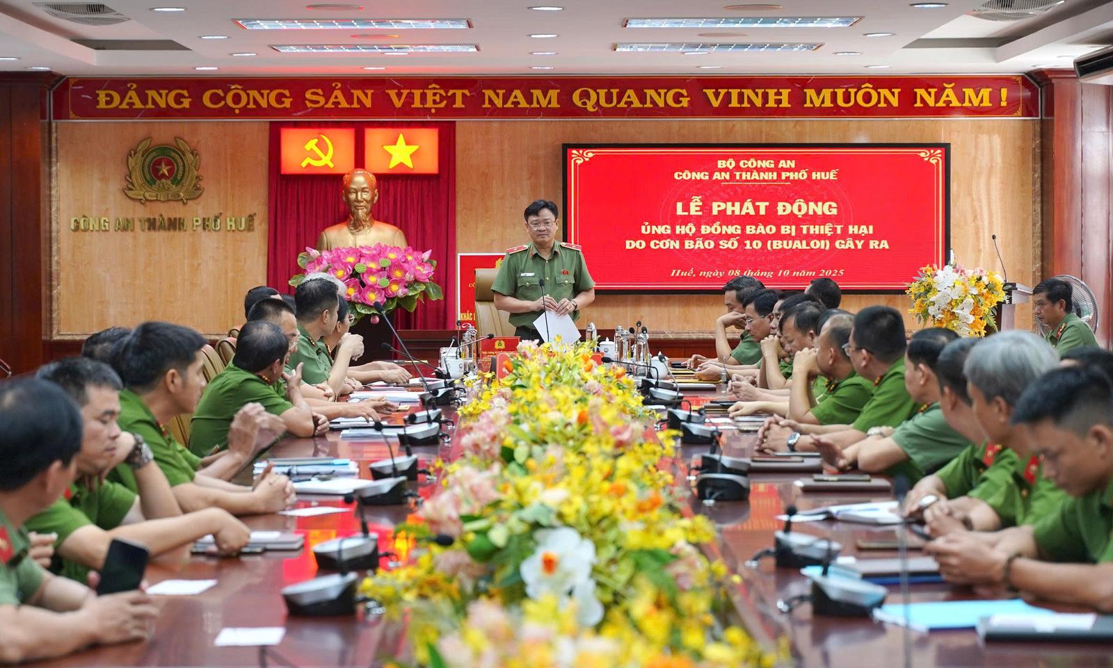 (Thanh tra) - Ngày 8/10, hưởng ứng lời kêu gọi của Ủy ban Trung ương MTTQ Việt Nam và lãnh đạo Bộ Công an, Công an TP Huế tổ chức Lễ phát động ủng hộ đồng bào và cán bộ, chiến sĩ (CBCS) Công an các tỉnh bị ảnh hưởng nặng nề do bão số 10 (Bualoi) gây ra.