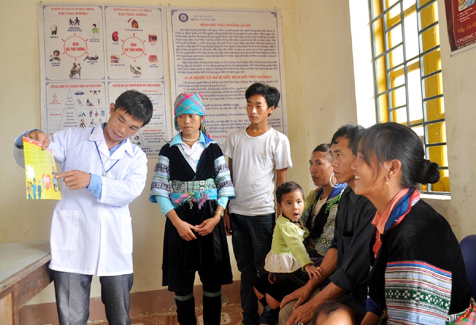 Về y tế, Việt Nam đứng thứ hai từ dưới lên (2007) và thứ năm từ trên xuống (2014) trong số các nước ASEAN về chi tiêu công cho y tế trên tổng chi y tế, tỷ lệ này có tăng lên theo thời gian (31% năm 2007 và 54,1% năm 2014). Tuy vậy, khó khăn về đội ngũ y bác sỹ ở tuyến cơ sở (vừa thiếu vừa yếu) ảnh hưởng đến chất lượng dịch vụ. Tỷ lệ tham gia bảo hiểm y tế của nhóm cận nghèo còn thấp (55%) dù được hỗ trợ từ 70% mệnh giá bảo hiểm trở lên.