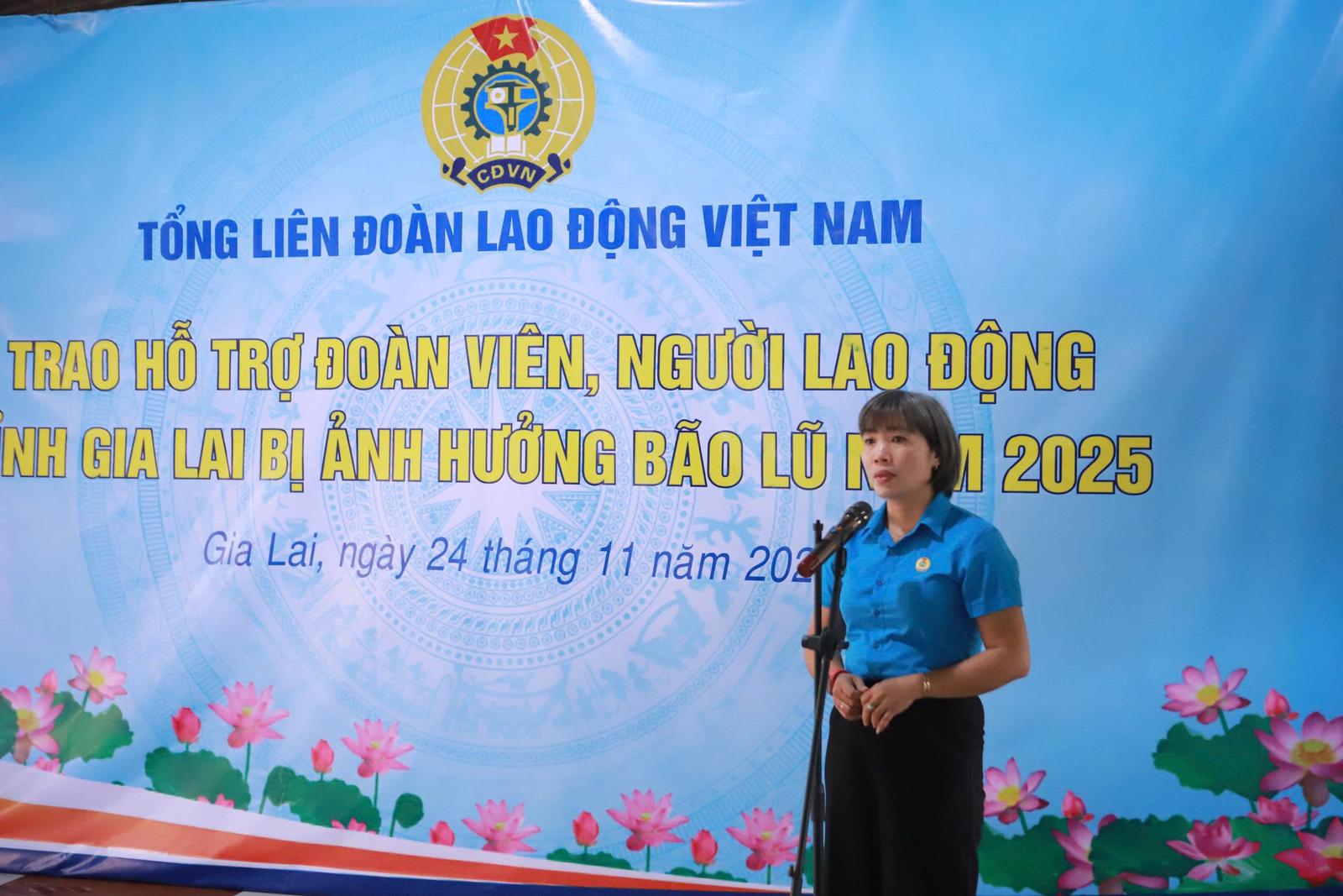 Theo bà Thủy, chỉ trong thời gian ngắn, Gia Lai đã liên tiếp chịu tác động của bão số 13 và trận lũ lịch sử, gây thiệt hại nặng về người và tài sản, ảnh hưởng trực tiếp đến nhiều ĐV, NLĐ.