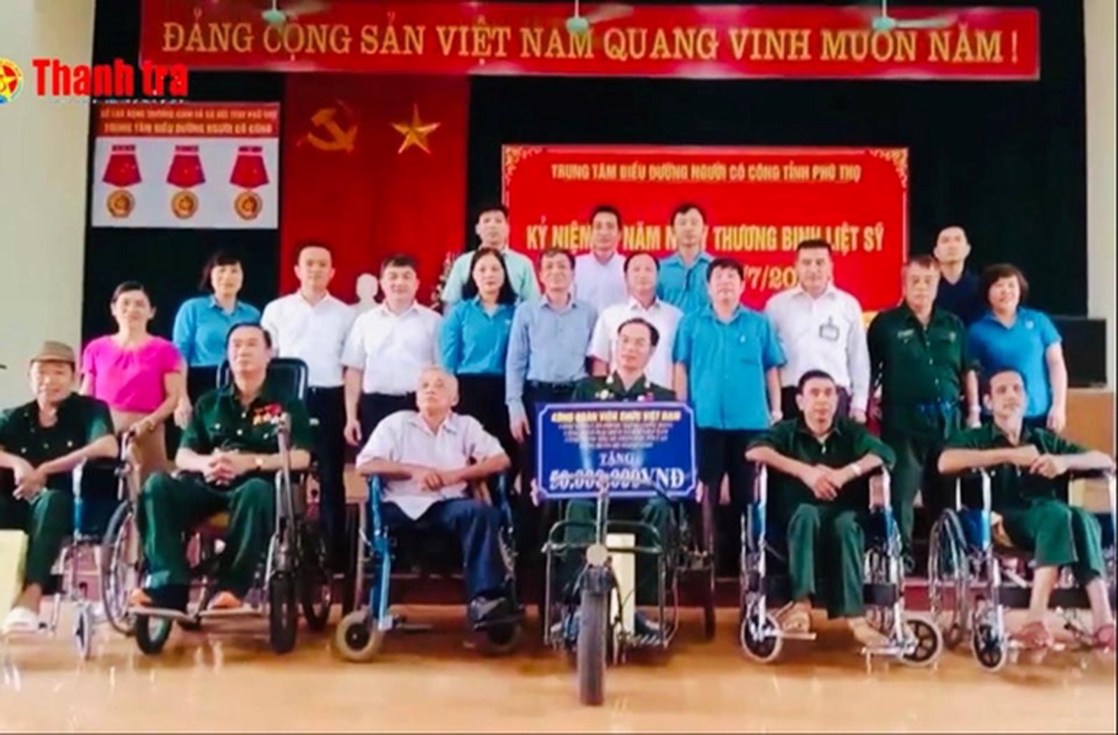 Trước đó, ngày 24/7/2020, đoàn công tác do Chủ tịch Công đoàn TTCP Vũ Hồng Khánh làm Trưởng đoàn cùng đại diện lãnh đạo một số cục, vụ, đơn vị đã đến thăm và tặng 30 suất quà (mỗi suất quà 1kg mì chính và 500.000 đồng) cho các thương binh, bệnh binh nặng tại Trung tâm Điều dưỡng người có công tỉnh Phú Thọ; tặng Trung tâm 5.000.000 đồng.