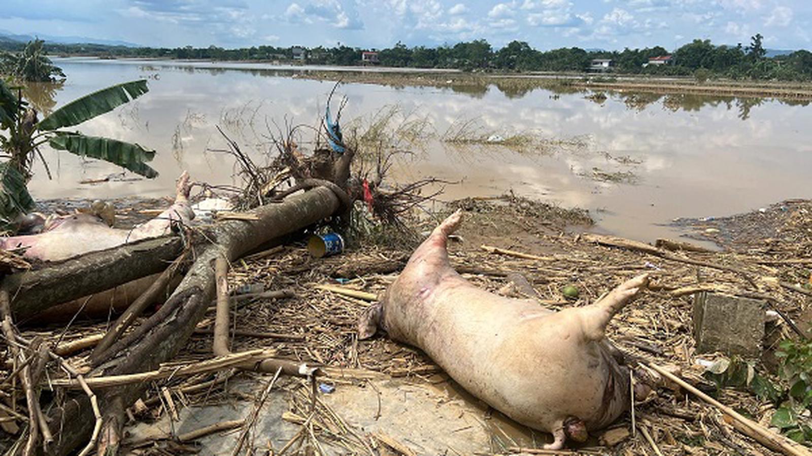Lũ cuốn trôi và làm chết gần 5.000 con lợn của Công ty TNHH Hòa Bình gây thiệt hại 35 tỷ đồng. Ảnh: Bùi Bình