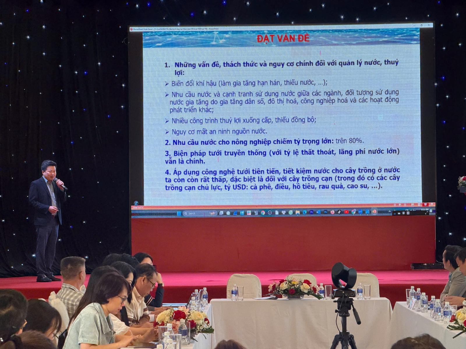 Các nhà khoa học, chuyên gia và doanh nghiệp chia sẻ kinh nghiệm, giải pháp công nghệ tưới hiện đại cho cây trồng cạn. Ảnh: NG