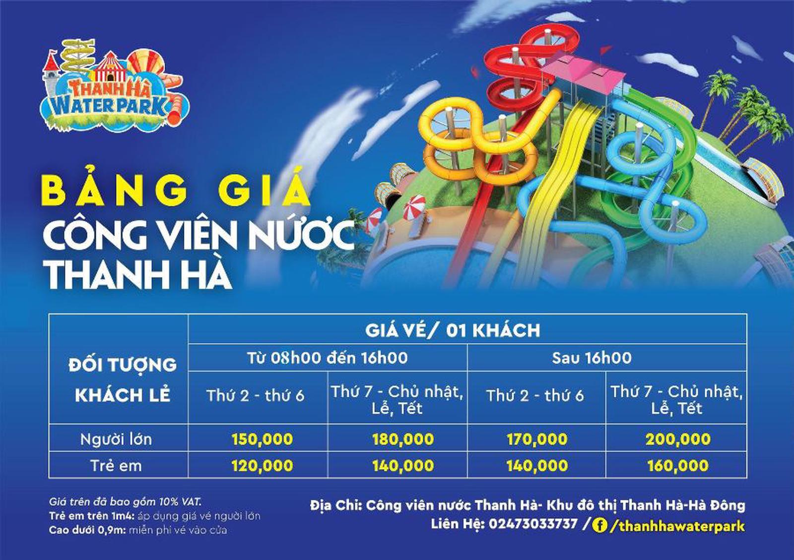 Với chi phí khá hợp lý, chỉ từ 150.000 - 200.000đ/người lớn và từ 120.000 - 160.000đ/trẻ em, bạn có thể đưa cả gia đình thân yêu đến công viên nước Thanh Hà để thử các trò chơi cảm giảm mạnh. Chắc chắn không khí vui nhộn ở đây sẽ làm bạn thích thú.