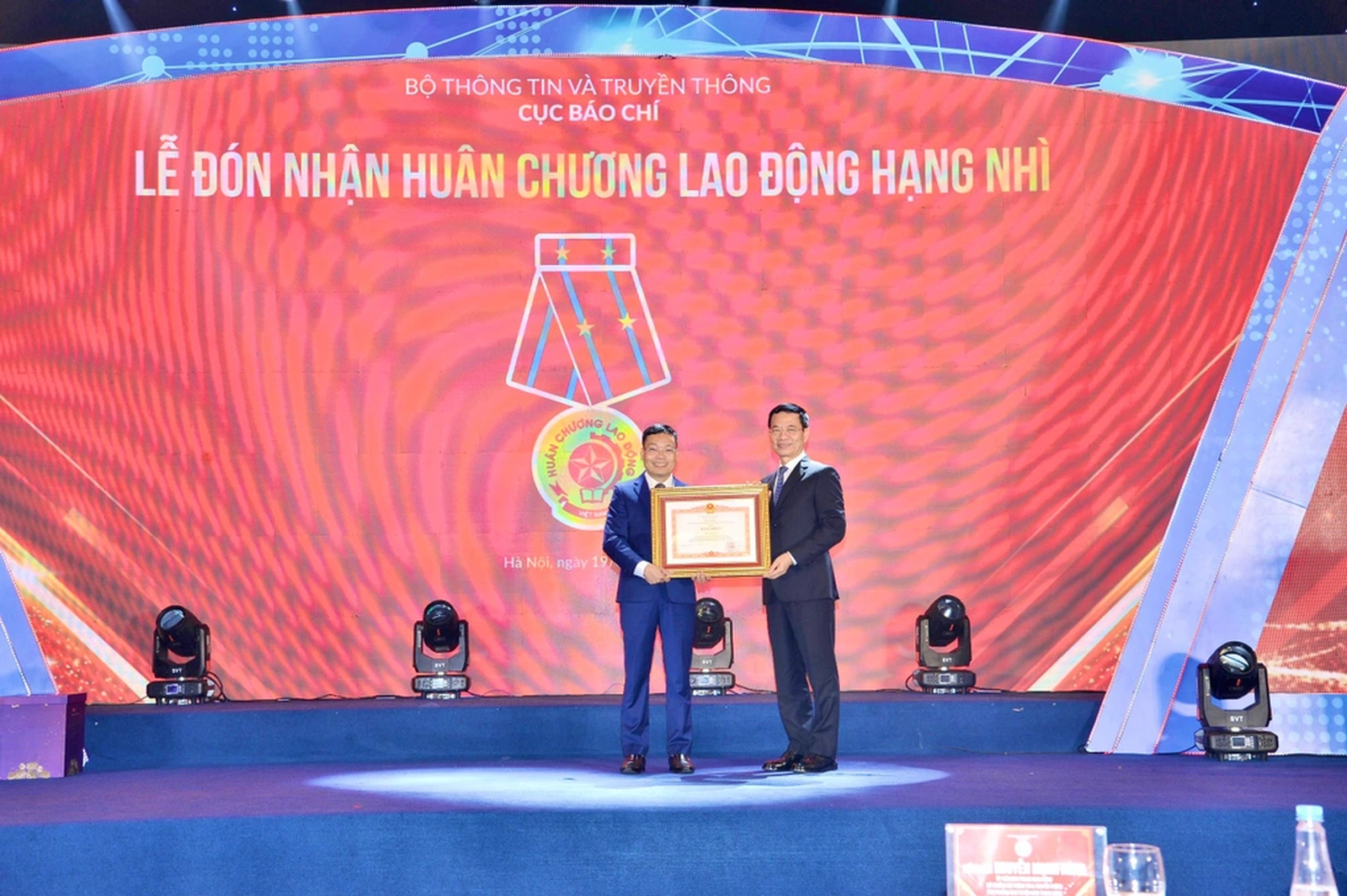 Phó Chủ tịch nước Võ Thị Ánh Xuân trao tặng Huân chương Lao động hạng Nhì nhân dịp kỷ niệm 20 năm thành lập Cục Báo chí. Ảnh: PV