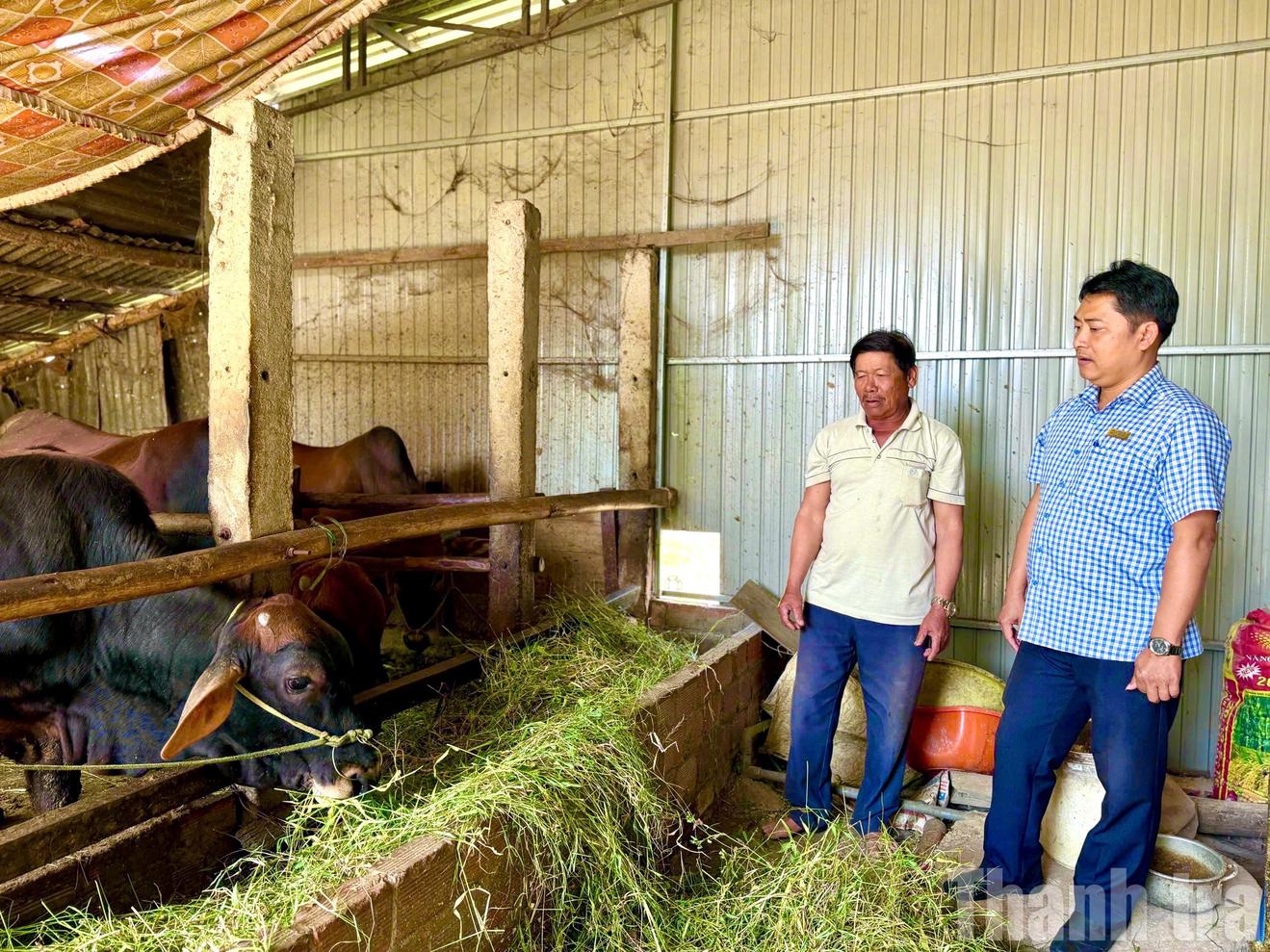 Một trong những điển hình tiêu biểu là ông Phạm Đình Nghĩa (thôn 13). Từng là hộ nghèo năm 2021, ông mạnh dạn tiếp cận thông tin qua Hội Nông dân, vay 50 triệu đồng vốn ưu đãi để phát triển nuôi bò. Được hướng dẫn kỹ thuật, ông dần mở rộng quy mô, kết hợp trồng bắp, cà phê, lúa trên 9 sào đất. Nhờ nỗ lực, thu nhập gia đình ông hiện đạt 200 - 250 triệu đồng/năm.