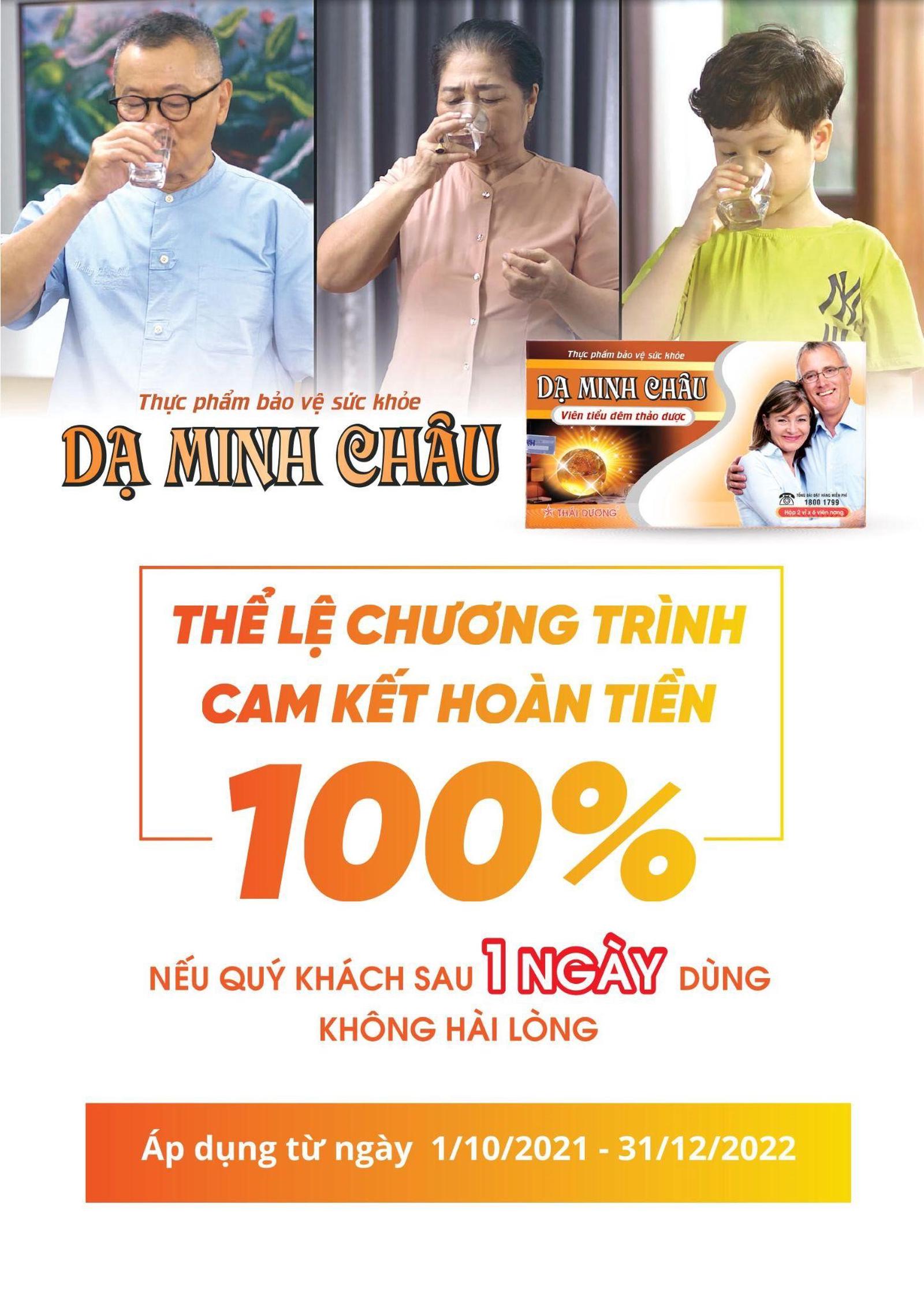 Từ 1/10/2021 đến ngày 31/12/2021, Dạ Minh Châu đang có chương trình hoàn tiền 100% nếu khách hàng sử dụng không hài lòng cho ngày đầu tiên sử dụng. Thủ tục hoàn tiền nhanh chóng, Mua ở đâu hoàn tiền tại đó nên người tiêu dùng hoàn toàn có thể dễ dàng tham gia.