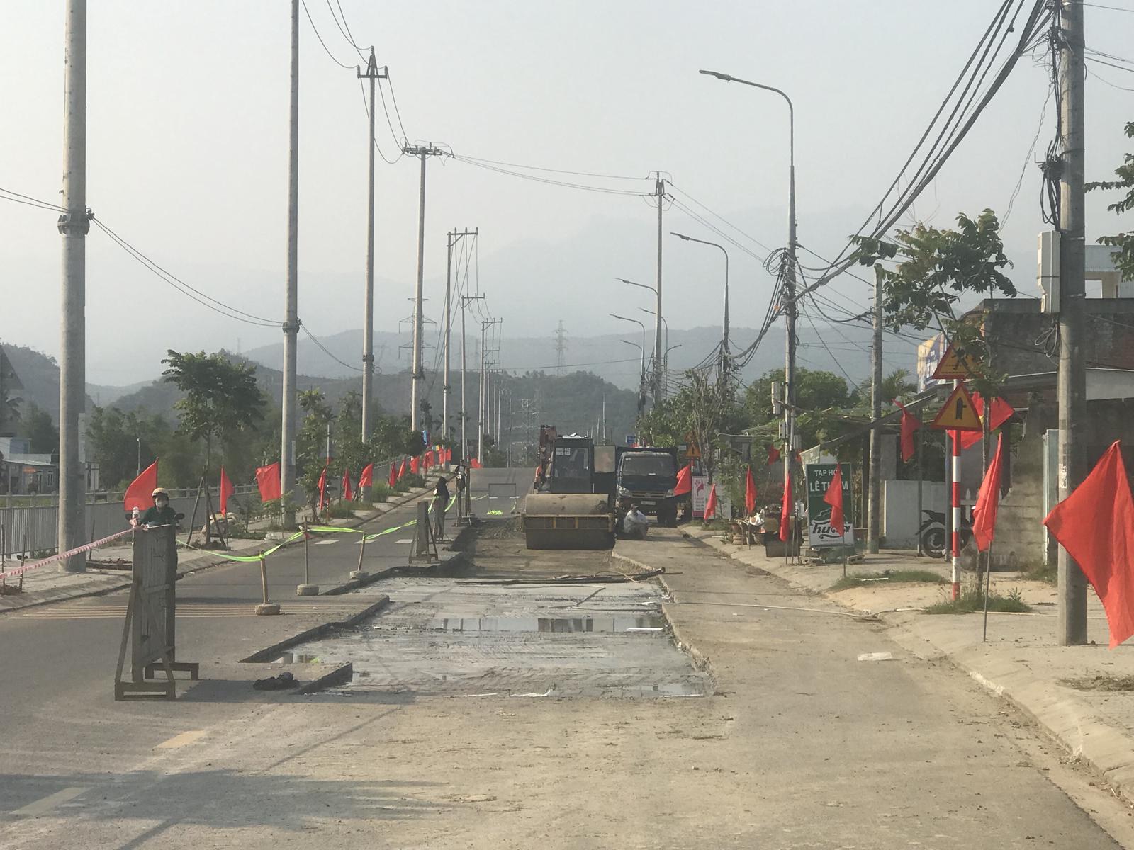 Đối với các vị trí mặt đường bị rạn nứt, bong tróc, dồn nhựa cục bộ phát sinh ổ gà, phía đơn vị thi công đã cắt, đào bỏ lớp móng cấp phối đá dăm, đào bỏ lớp mặt đường, đảm bảo bề rộng xử lý và bề rộng máy lu thi công, chiều sâu đào trung bình 37cm; với tổng phạm vi sửa chữa hơn 1.000m², tại 14 vị trí khác nhau.