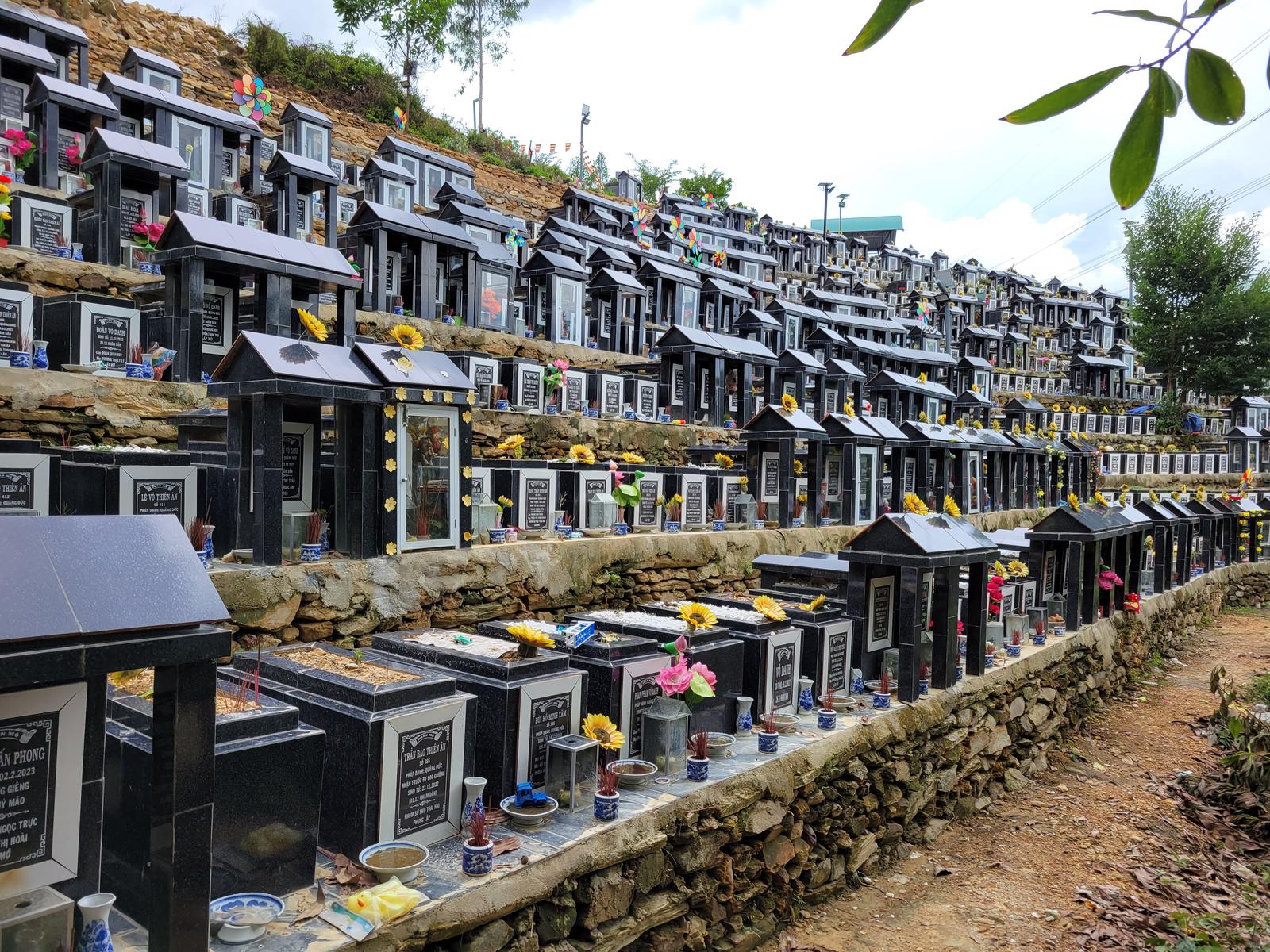 Trời dần chiều và sậm đen chờ đổ mưa to. Đôi vợ chồng hiền lương bắt đầu thu dọn đồ đạc tạm xa hàng ngàn “đứa con” bé bỏng của mình để về nhà nghỉ ngơi. Rồi sáng mai, khi mặt trời vừa ló dạng bờ Đông họ lại có mặt nơi đây. Cũng công việc thường nhật là nhổ cỏ, thắp hương, lau dọn phần mộ… cho các cháu.