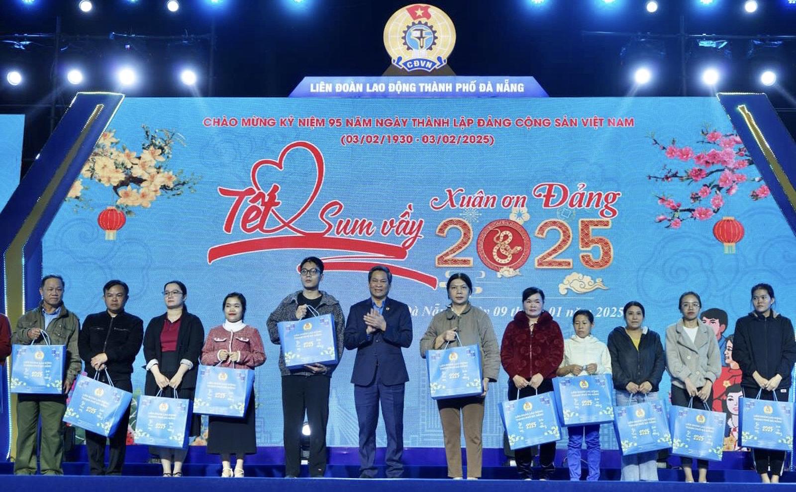 (Thanh tra) - Tối qua (9/1), với chủ đề “Tết sum vầy - Xuân ơn Đảng”, Liên đoàn Lao động (LĐLĐ) TP Đà Nẵng đã tổ chức chương trình chăm lo Tết cho đoàn viên công đoàn, công chức, viên chức, người lao động (gọi chung là người lao động) đang sinh hoạt tại các công đoàn cơ sở, tổ công nhân tự quản khu nhà trọ, nhà ở công nhân thuộc LĐLĐ TP và khai mạc Chợ Tết Công đoàn 2025.