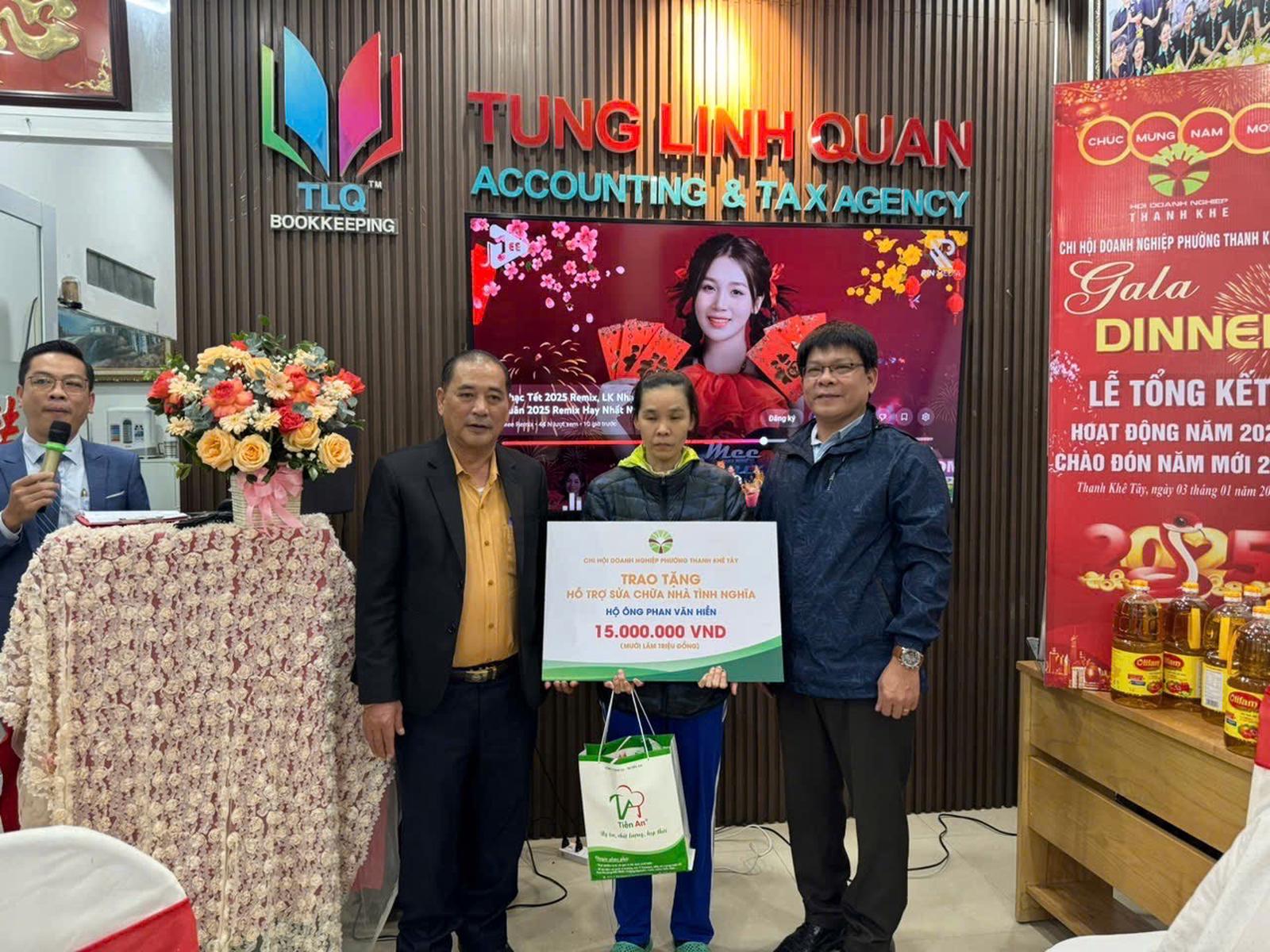 Chi hội Doanh nghiệp Thanh Khê Tây tặng kinh phí sửa chữa nhà cho các hộ đặc biệt khó khăn. Ảnh: N.P