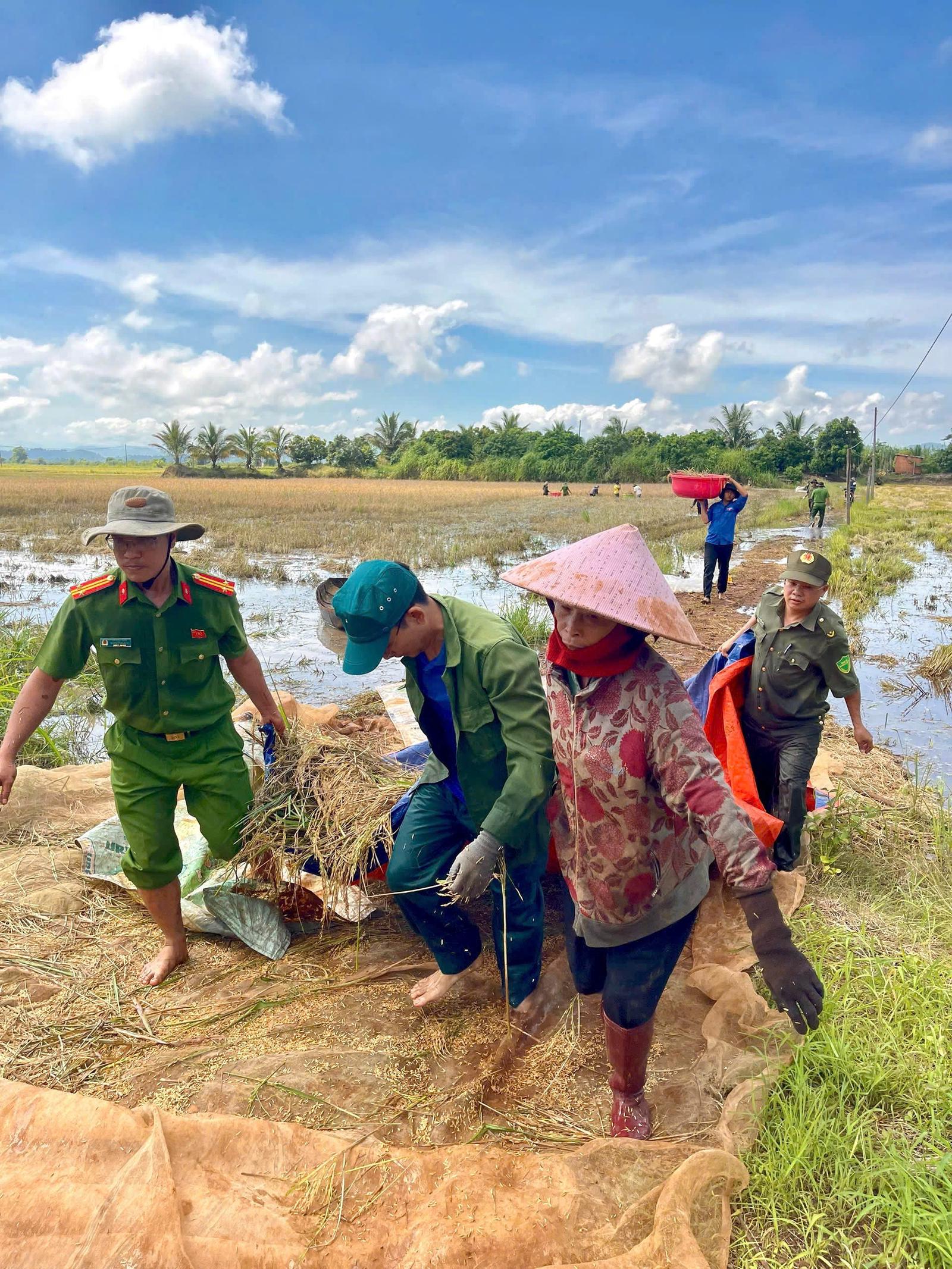 Trước tình hình khẩn cấp đó, sáng ngày 11/9, một hình ảnh đẹp và đầy ý nghĩa đã lan tỏa khắp vùng quê này: Đoàn Thanh niên xã Ea Na đã phối hợp cùng lực lượng công an xã huy động 70 người, gồm 50 cán bộ, chiến sĩ công an và 20 đoàn viên thanh niên, khẩn trương xuống đồng hỗ trợ người dân thu hoạch lúa chạy lũ.