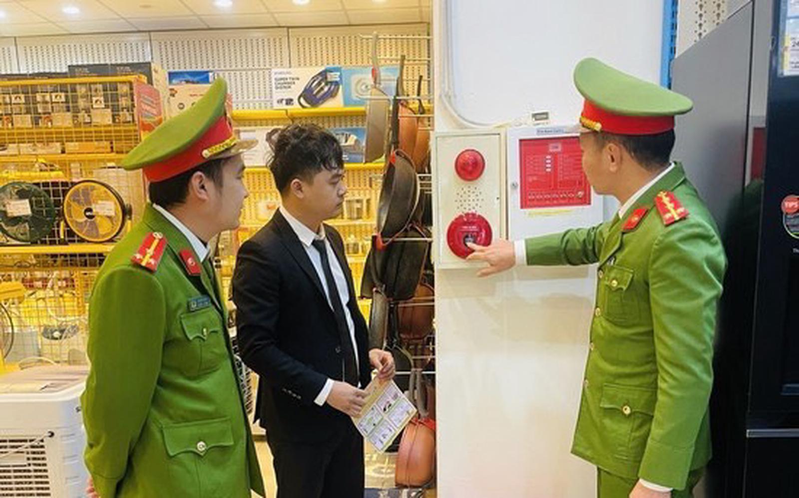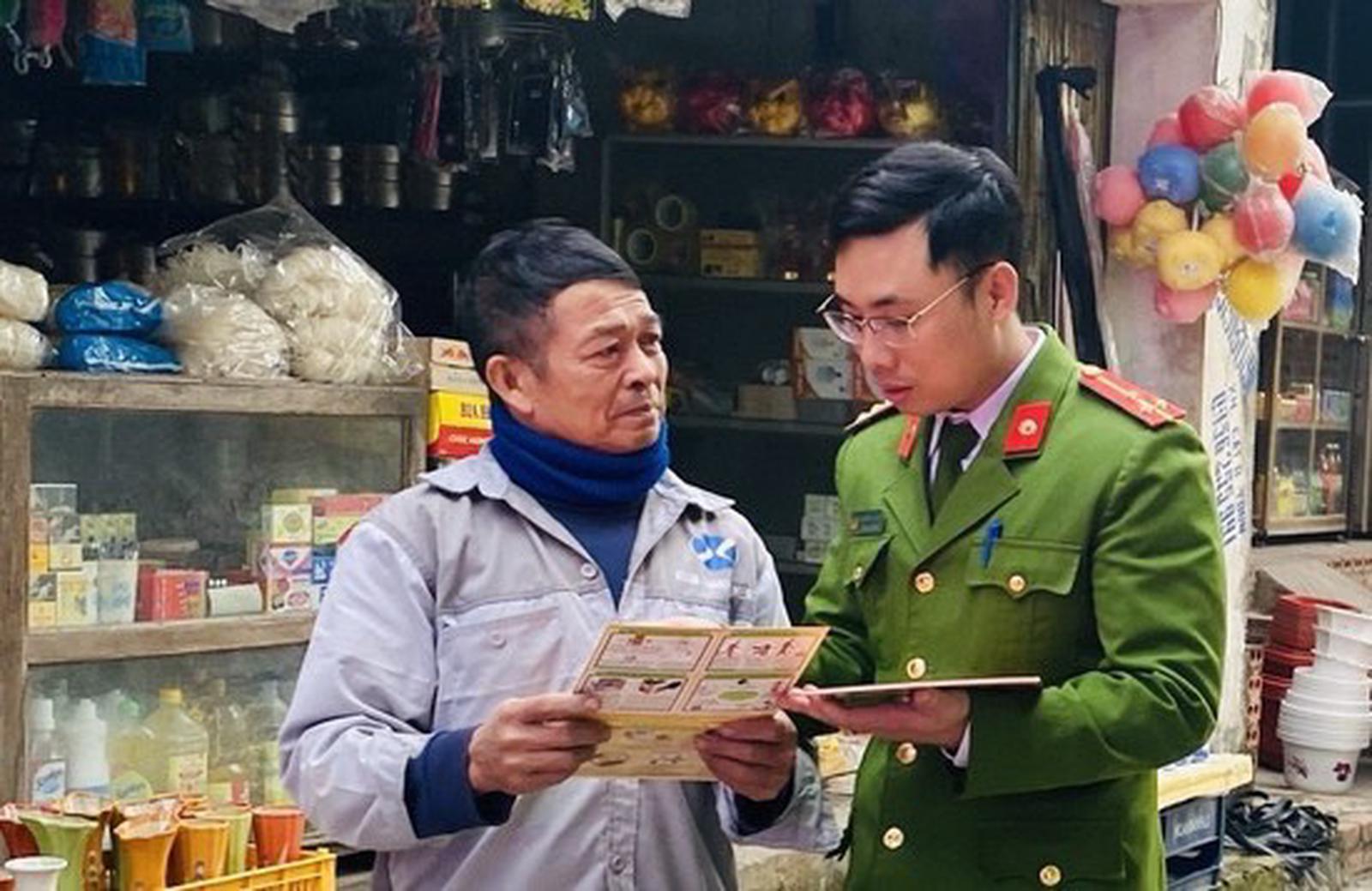 Lực lượng Cảnh sát PCCC&CNCH đang tuyên truyền, hướng dẫn cho các cơ sở kinh doanh trong Tết Nguyên đán. Ảnh: HT