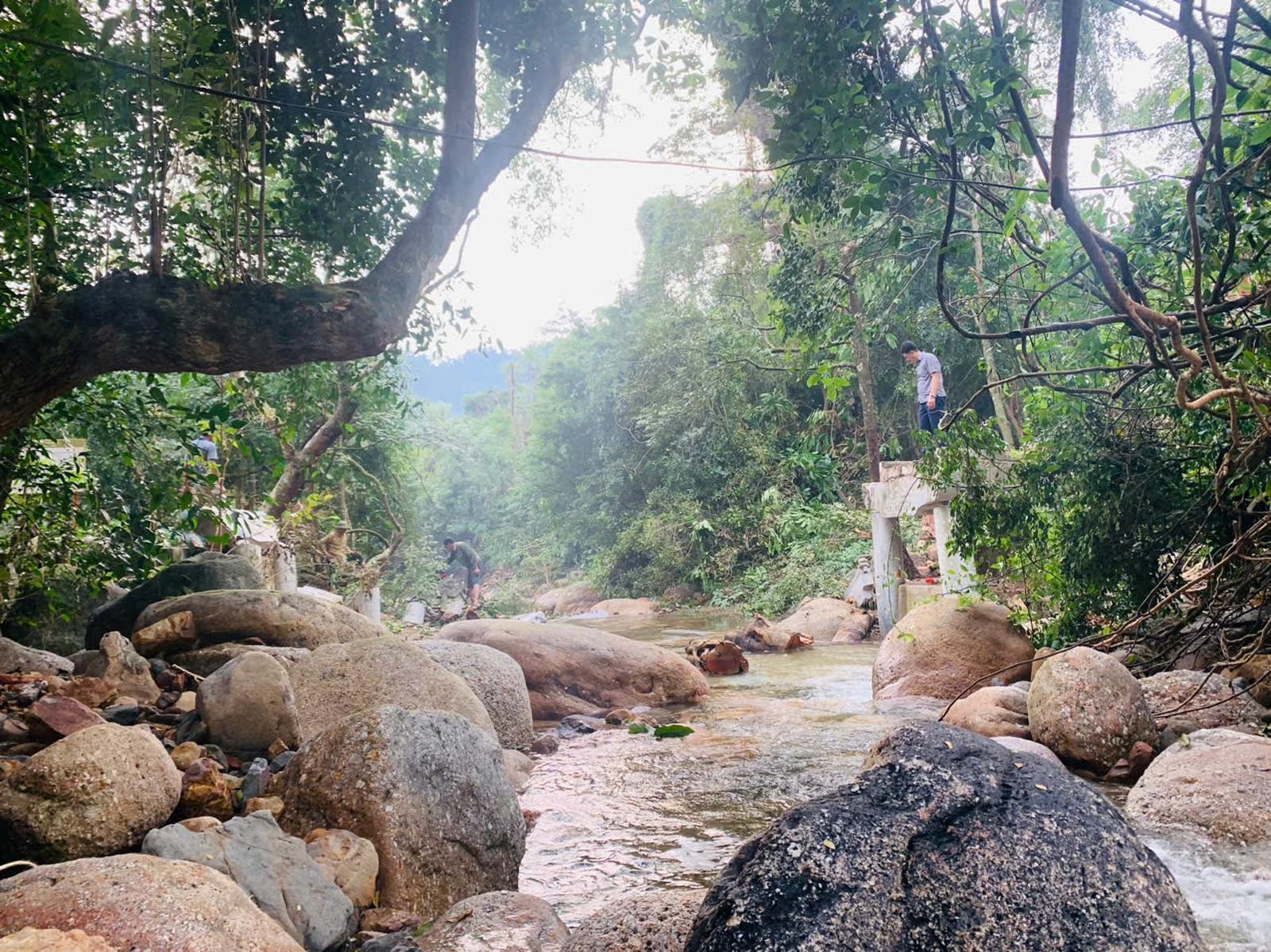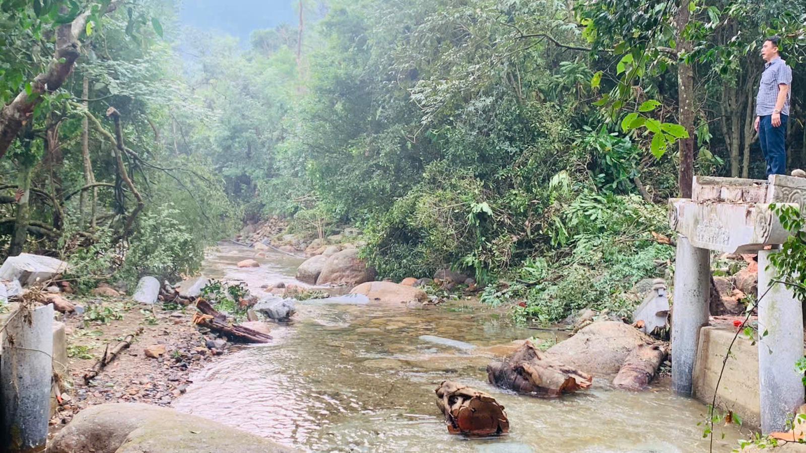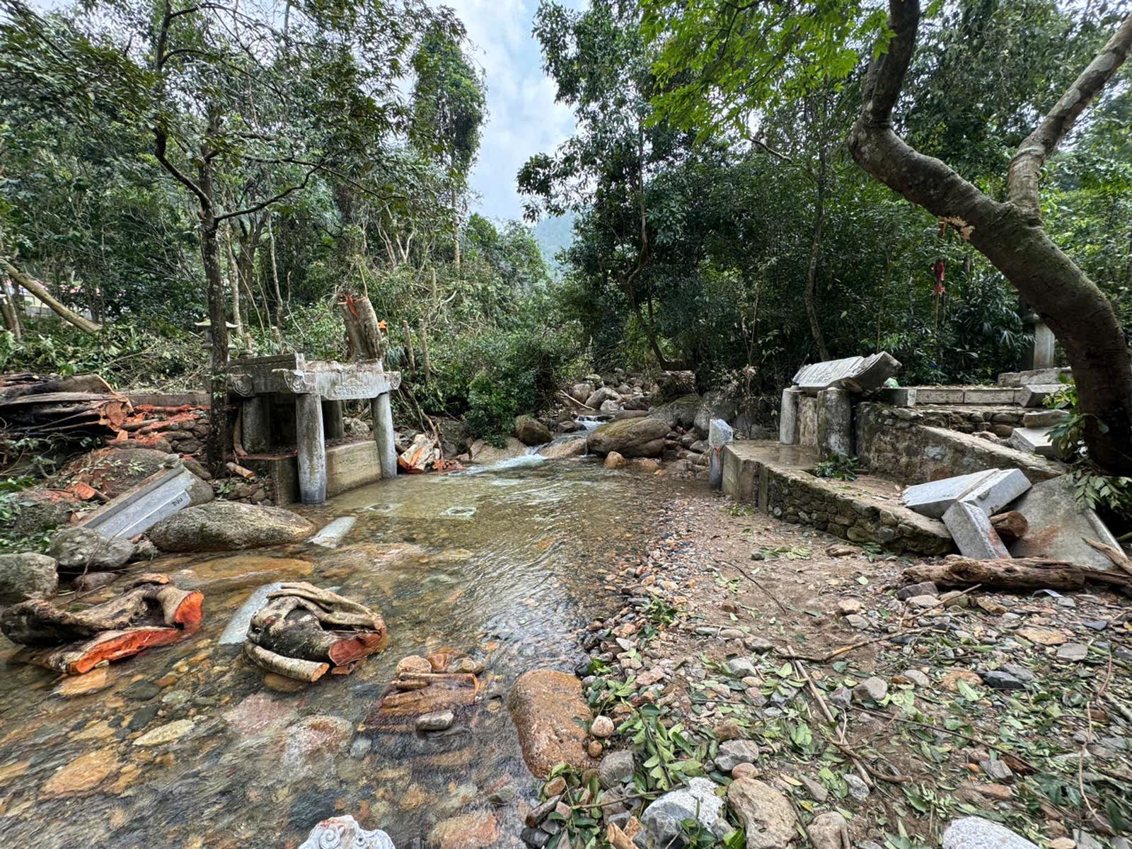 Cây cầu đá bắc qua suối Giải Oan dưới chân núi cũng bị cuốn phăng theo bão. Ảnh: BQL